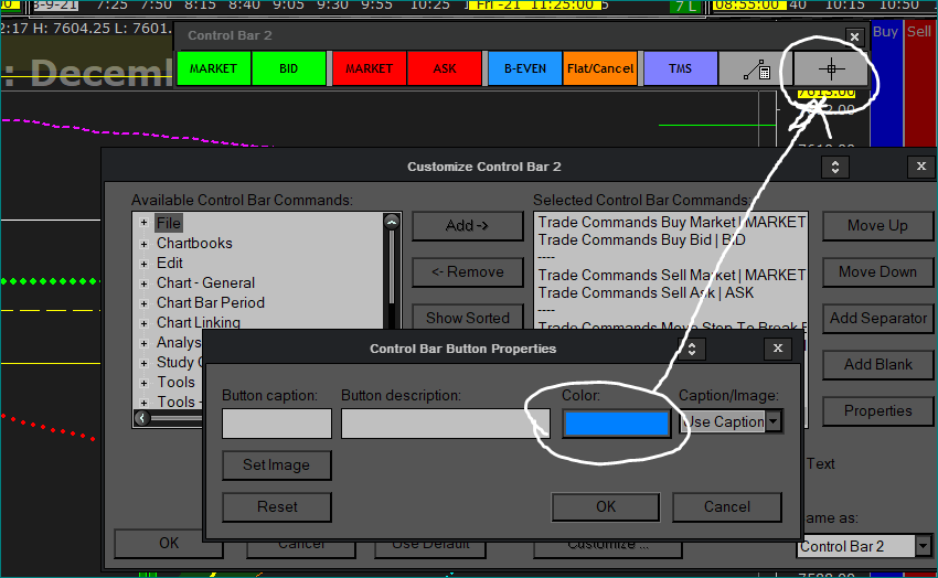 Should not be any problem with this. Refer to the documentation here: Control Bar: Control Bar Button Properties Sierra Chart Support - Engineering Level Your definitive source for support. Other responses are from users. Try to keep your questions brief and to the point. Be aware of support policy: https://www.sierrachart.com/index.php?l=PostingInformation.php#GeneralInformation For the most reliable, advanced, and zero cost futures order routing, *change* to the Teton service: Sierra Chart Teton Futures Order Routing |