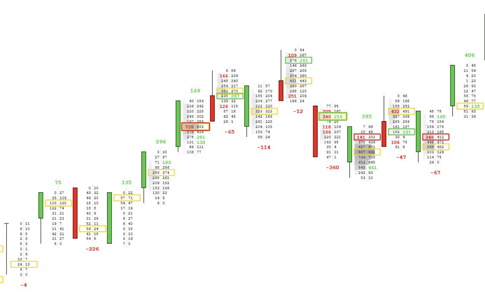 Hello, I am trying to set up the footprint charts on Sierra to look just like the picture attached to this post. It basically contains: column 1: candlestick chart column 2: Bid Ask Clusters with a volume profile in it based on bid ask volume profile traded on each price level. I could even think about adding the volume profile to the 3 column but I just can't separate it all in a way that it looks clean. I can't even make the candlestick chart appear correctly. |