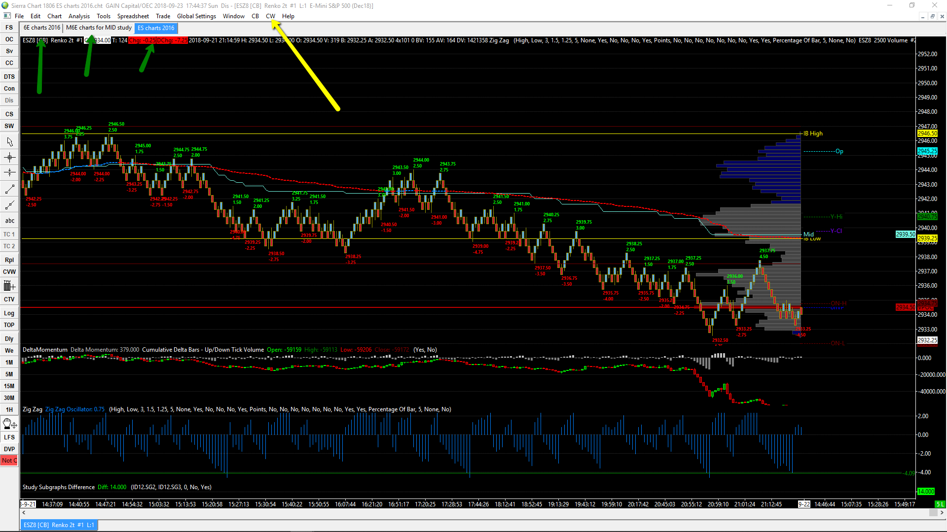 Hi, I have 3 chart books, and after pressing the CW button it always used to reveal the charts that i had in each book. 3 days ago i gave names to the charts in Chartbook 1, using the Title bar Name under Advanced Settings 2 in Chart Settings. Then I noticed that now when pressing the CW button in the Chartbooks 2 and 3, the chart windows names are all mixed up and are 22, mixture of all sorts, whereas they used to be 6 or 7 and dedicate to the chart books i.e. ES in the ES chartbook , and now 6E charts are showing the in the ES chart book. http://www.sierrachart.com/image.php?Image=1537721636263.png |
