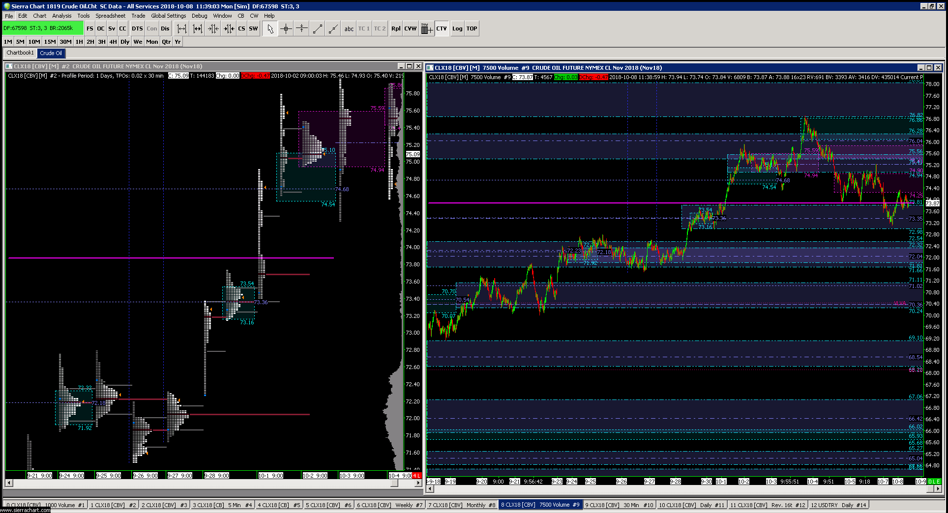As I noted above, drawings are kept internally with reference to the bars and the prices in tick values. This is just how we handle these in order to ensure that drawings are consistent throughout the program, otherwise funny things can happen. So yes, you need to do exactly what you are stating, which is to draw the Ray across 2 days worth of TPO charts. But, a better option, if you are just setting the ray horizontally is to use the Horizontal Ray option. This only has 1 Anchor point, as then the direction is stored separately. I see that you have used these many other times, and it looks like it would be a better option here. For the most reliable, advanced, and zero cost futures order routing, use the Teton service: Sierra Chart Teton Futures Order Routing Date Time Of Last Edit: 2018-10-08 19:35:43
