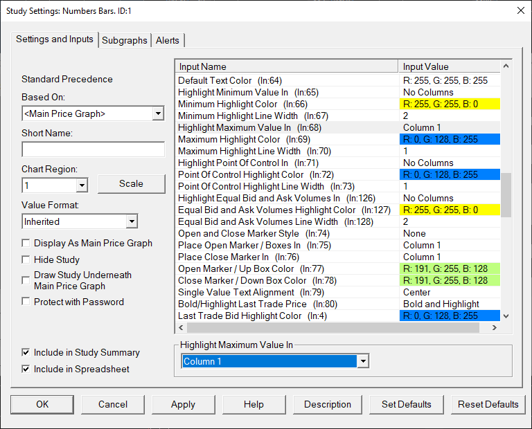 I'm following the directions here Numbers Bars: Highlight Maximum/Minimum Value Based On However my Highlight Maximum Value In only has column 1, 2, 3.. . . Not the choices listed on the page. Something I'm doing wrong? What i'm looking to do is take a current numbers bar, maybe it has 15 price levels, I want to highlight the large order quantity bars, maybe there are 2 or 3 that highlight on the bar. I see that is is possible but can't get it to work. |