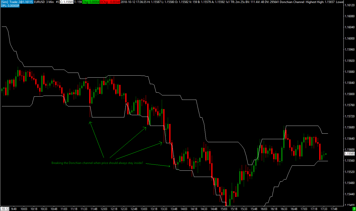 Hi guys, wondering if you could help with my query on the DC. It seems to be that price is breaking outside the channel even when I have it set to using the high and low. However, on other trading platforms DC cannot be broken, price just pushes the width higher. Thanks |