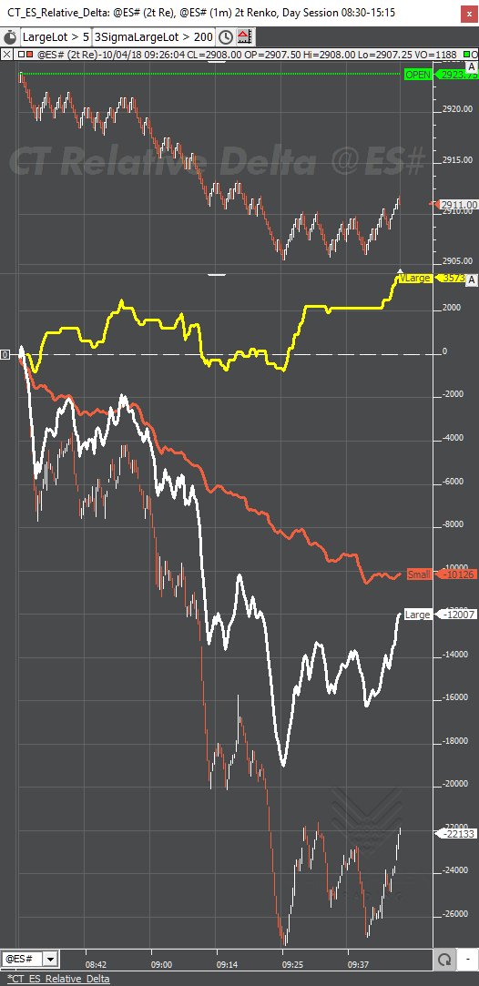 Here is a study that FT-71 composed on IRT that takes the amount of contracts per transaction as there coming into the exchange and plots them on a line graph. The yellow line represents 200 or more contracts per transaction (x-large), white line is 28 contracts or more per transaction (large), and orange is 27 and less (small). Is this possible to replicate using sierra? Thanks