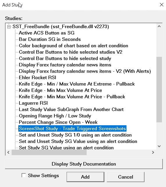 Dear Support, my client requested me: "I need a indicator which automatically takes screen shot of my entire sierra window and store in specified directory". I didn't find in SC function which allow make snapshots of screen by ACSIL methods. Could you tell me - does it have sense to use SC tools for this taks or may be it is more effective to use screenshot capture program? Thanks, Alex.