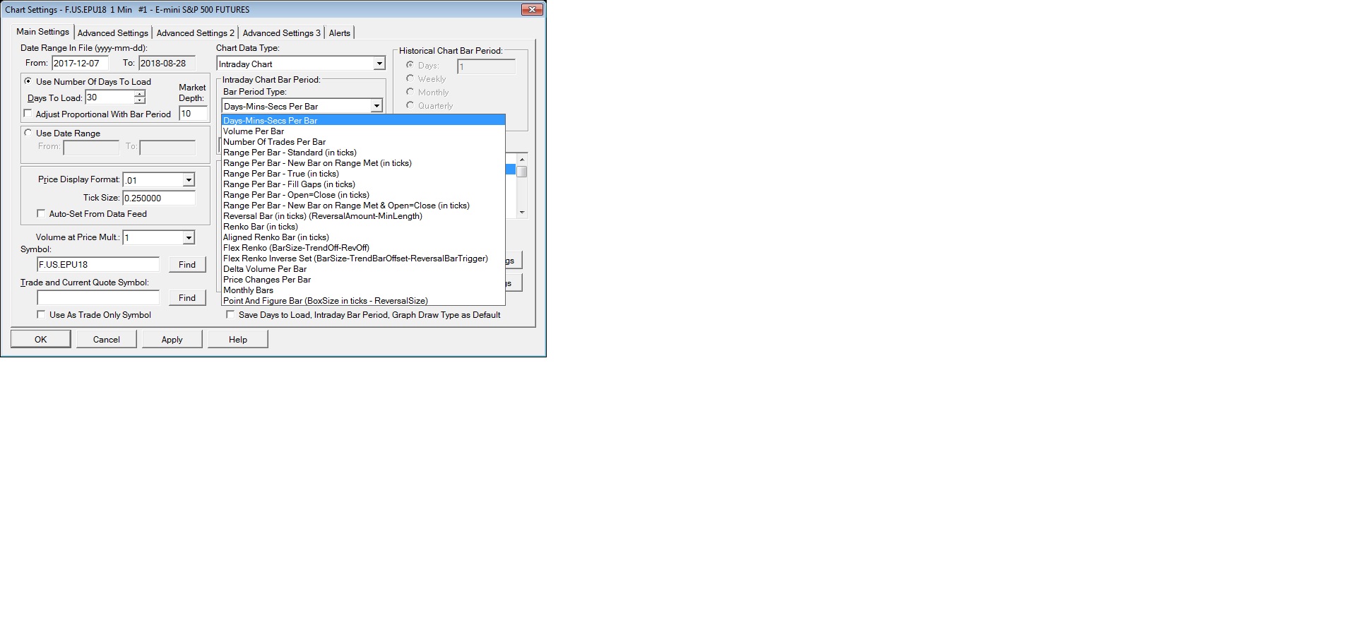 They are called Flex Renko now: Renko Bar Charts: Flex Renko Renko Bar Charts: Flex Renko Inverse Setting Bars Sierra Chart Support - Engineering Level Your definitive source for support. Other responses are from users. Try to keep your questions brief and to the point. Be aware of support policy: https://www.sierrachart.com/index.php?l=PostingInformation.php#GeneralInformation For the most reliable, advanced, and zero cost futures order routing, *change* to the Teton service: Sierra Chart Teton Futures Order Routing |