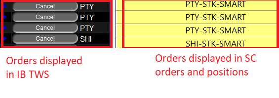 In the pic attached, the left side is the order displayed in IB TWS, all the symbols are commonly used without "STK-SMART" suffix, the right side is the orders displayed in SC orders and potions, all the symbols have "STK-SMART" suffix, which cannot be displayed in SC chart using common symbol format. So PLEASE PLEASE solve this simple issue.