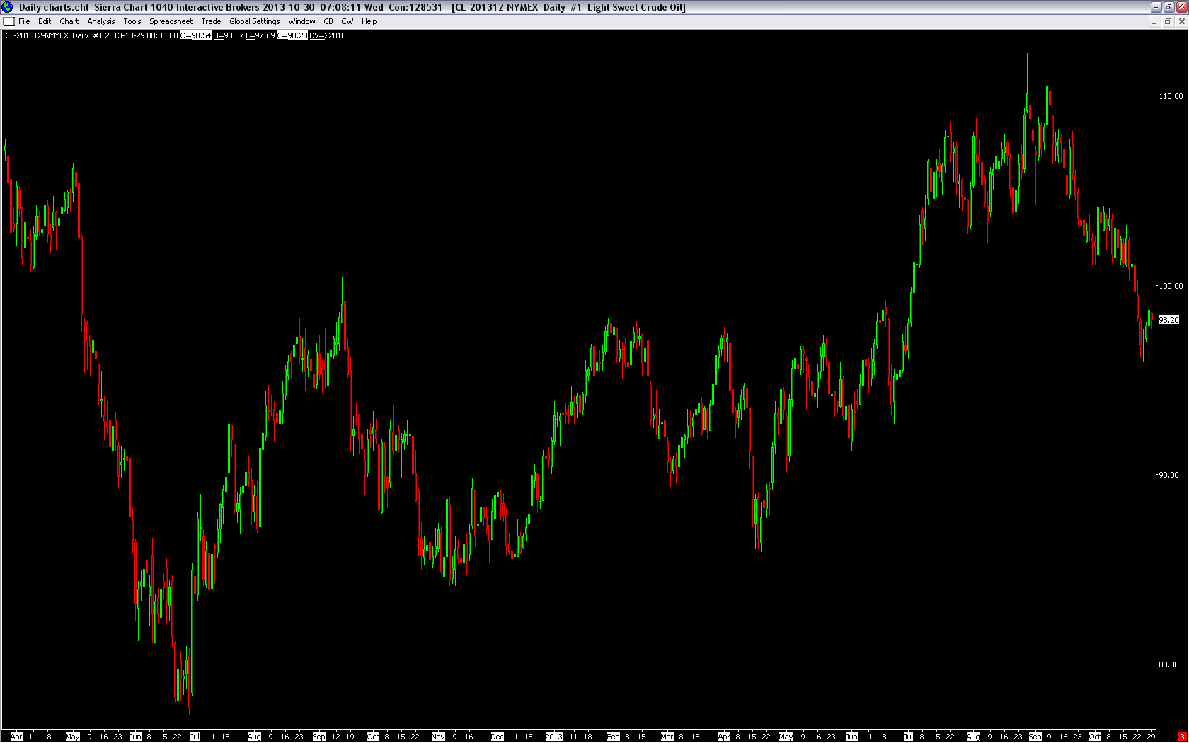 hi, i have this question. there is daily chart of crude oil on the picture untill yesterday. yesterdays close is 98.20 and my question is what time was this close. what time is close of the day in your historical charts? thank you