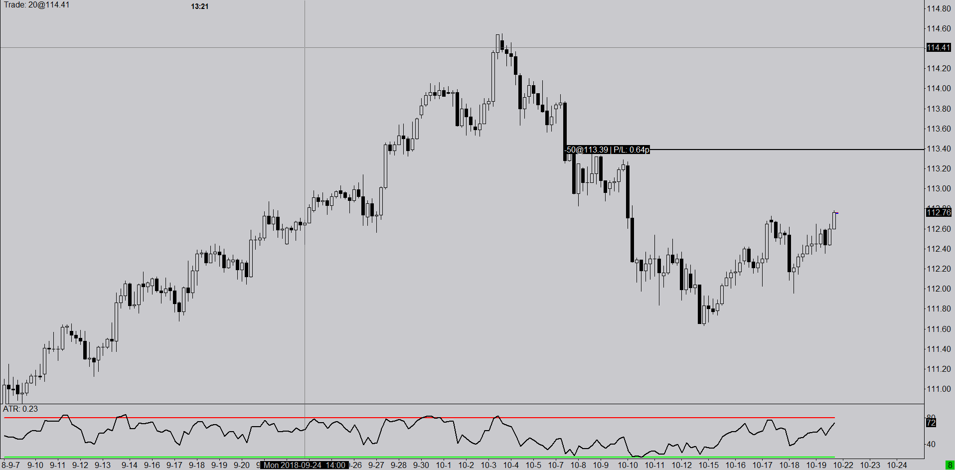Good morning, My chart shows a filled order which is not reflected on my account, due to the fact that I am flat on that securities. I have an order filled on USD/JPY as shown in the attached picture. http://www.sierrachart.com/image.php?Image=1540197999243.png I tried to refresh the trade data from service already but nothing change. |