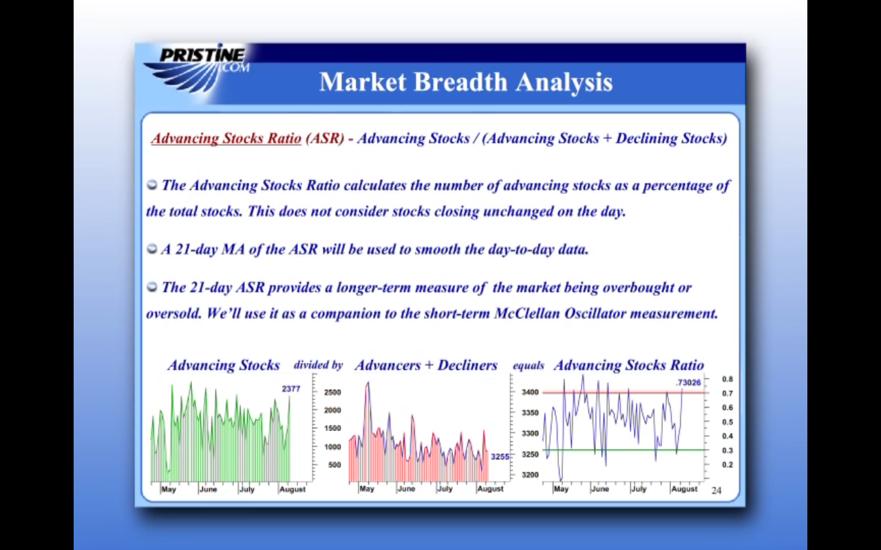 Hi guys. I could not find this symbol in market statistics. How can I create it using the available charts?? I am attaching an image with the formula. To create the ASR, we need: Advancing Stocks / Advancers+Decliners = Advancing Stocks Ratio |