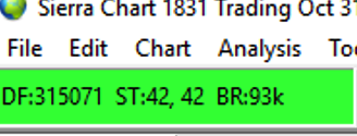 Refer to the documentation here: Status Bar Sierra Chart Support - Engineering Level Your definitive source for support. Other responses are from users. Try to keep your questions brief and to the point. Be aware of support policy: https://www.sierrachart.com/index.php?l=PostingInformation.php#GeneralInformation For the most reliable, advanced, and zero cost futures order routing, *change* to the Teton service: Sierra Chart Teton Futures Order Routing |