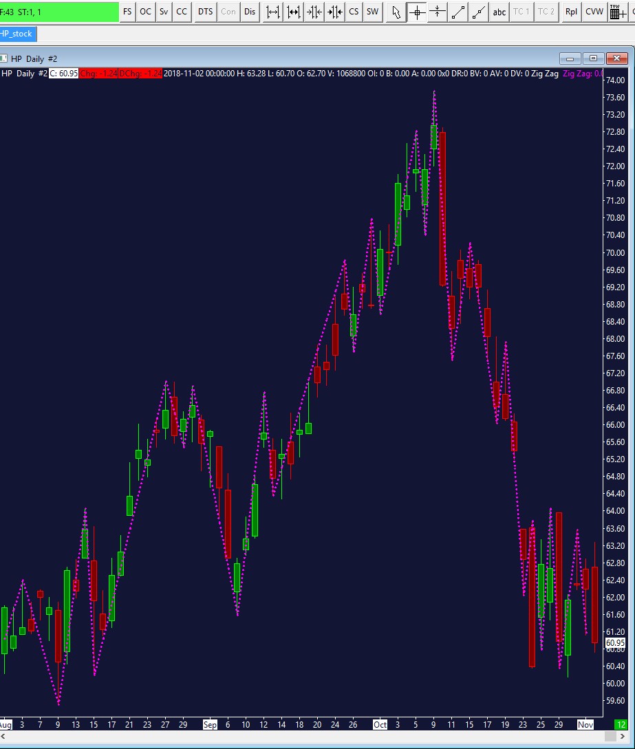 Hello, can anyone help me, please. I want to use the zig zag study in my chart. I would like the zig zag to show downtrend or uptrend as soon as the market changes by 3% from the chart price (close price). I was looking at the help, but I do not understand what study (1,2,3) should I use and where to set% value. Currently, I have set my study no.1 and I've set percentage percentage in Reversal% for Calculation Mode 1. But according to me the zig zag is too rugged, only a few supports and resistans should be on the graph. Thanks for help. Date Time Of Last Edit: 2018-11-08 17:11:06