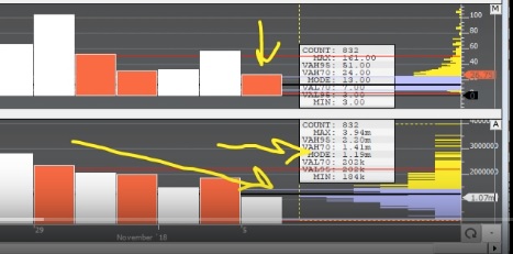 Hi SC support team, I saw this useful indicator in a competitor product. It is basically a histogram that records the stats of daily volume and candle range over a selected period. Do we have it in SC? Please consider this for future project. Please advise. |