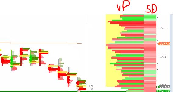 I was hoping to have the Volume by Price study able to use the coloring options from the numbers bar study. When I set the number bars study to 1-0-0 for a daily graph, I can't have it "on" the same window as a renko type chart. I was just hoping that the color gradient of the volume by price could be more granular, to emulate something like this attachment in capture.jpg. VP is the delta shaded volume profile, and SD is the smooth delta which just takes a tick above/below and does a avg. The closest I can get with SC is capture2, but I cannot gradient the colors. |