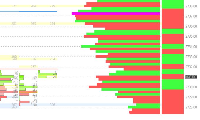 I'm coming from Investor R/T where they have a Delta Shaded Volume Profile, and a "smoothed Delta" profile that takes the values from the VP and avg's them. Using the smoothed delta profile, it's very easy to see areas of support and resistance off the slope of the VP to the HVN. Is there anyway to get better color gradation in the VP on SC? I attempted to duplicate the smoothed delta, using a 3 tick avg, but it's not that clear. I attached two images. Thank you very much! This is from their site. https://www.linnsoft.com/techind/price-statistics Volume Profile Delta Shaded - distribution of volume at price and shades each volume at price bar according to the intensity of delta. Smoothed Delta (y) - Averages the delta for the nearest (y) bars and displays it as a value. |