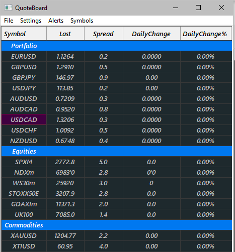 Good morning, Since when I opened the platform this morning the quote board doesn't show any price changes anymore. I can see that the "last price" column changes value but in both the daily change and daily change % columns everything is stacked. There is no color changes neither (I have set red and green by default when price changes but isn't working). Please find attached. Kind regards, Fabio. |