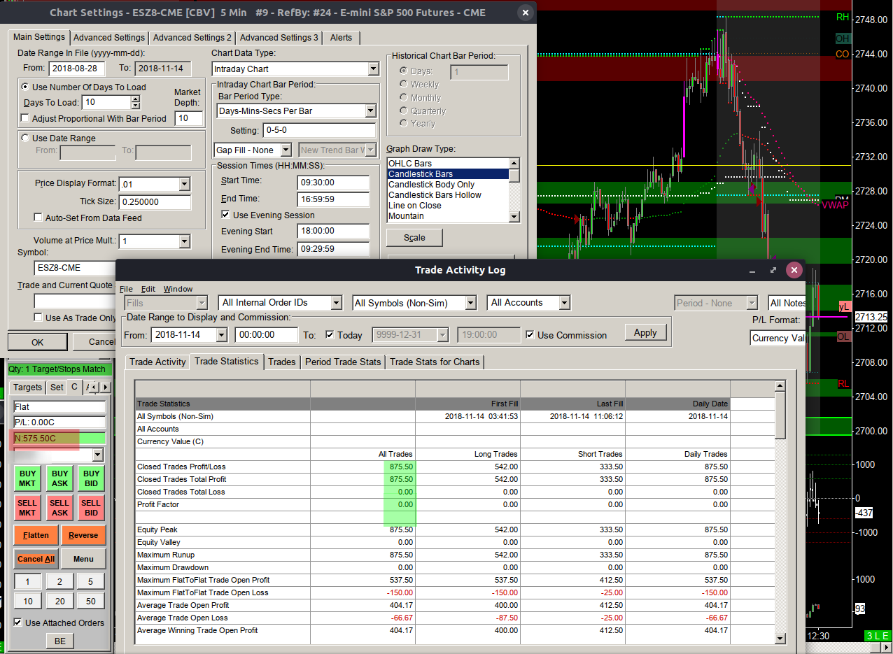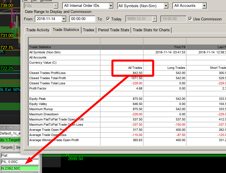 We realize the instructions at step 21 here were not necessarily going to work in all cases when trying to get a match with the Daily Profit/Loss between a chart and the Trade Activity Log. A better explanation has been given: http://www.sierrachart.com/index.php?page=doc/DailyProfitLossValue.html Refer to step 21. And also the screenshot is not following the instructions in that documentation: https://www.sierrachart.com/Download.php?Folder=SupportBoard&download=23583 For example you still have the Use Commission setting enabled and you did not select a particular Symbol and Trade Account. These last two items, are a major item and why you cannot expect to have a match. You should also select to display the PL in Points both on the chart and the Trade Activity Log to remove additional complexity with potential inconsistent settings like the Currency Value per Tick. Sierra Chart Support - Engineering Level Your definitive source for support. Other responses are from users. Try to keep your questions brief and to the point. Be aware of support policy: https://www.sierrachart.com/index.php?l=PostingInformation.php#GeneralInformation For the most reliable, advanced, and zero cost futures order routing, *change* to the Teton service: Sierra Chart Teton Futures Order Routing Date Time Of Last Edit: 2018-11-15 19:24:52