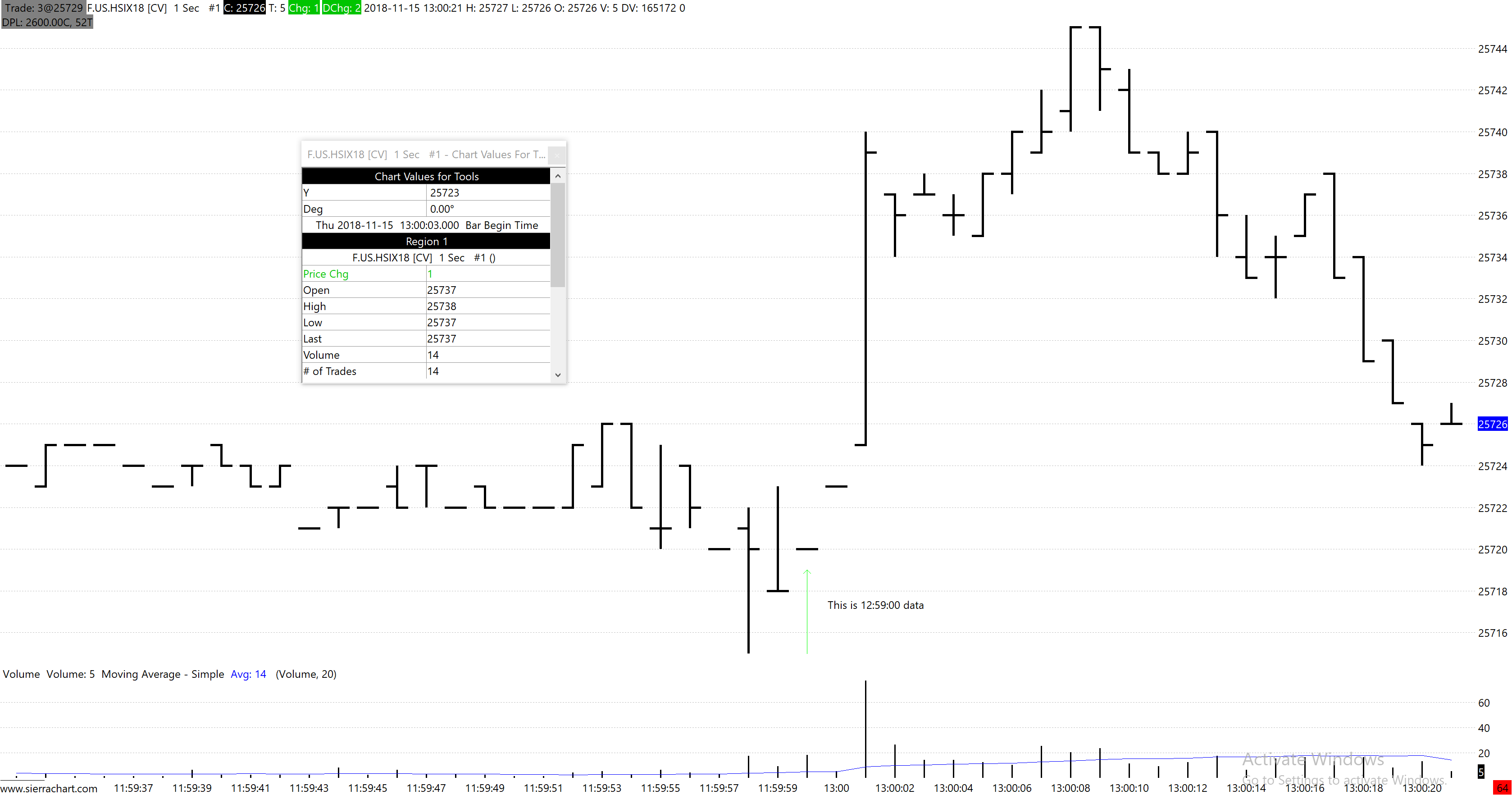| What is the starting time of that chart bar? Sierra Chart Support - Engineering Level Your definitive source for support. Other responses are from users. Try to keep your questions brief and to the point. Be aware of support policy: https://www.sierrachart.com/index.php?l=PostingInformation.php#GeneralInformation For the most reliable, advanced, and zero cost futures order routing, *change* to the Teton service: Sierra Chart Teton Futures Order Routing |