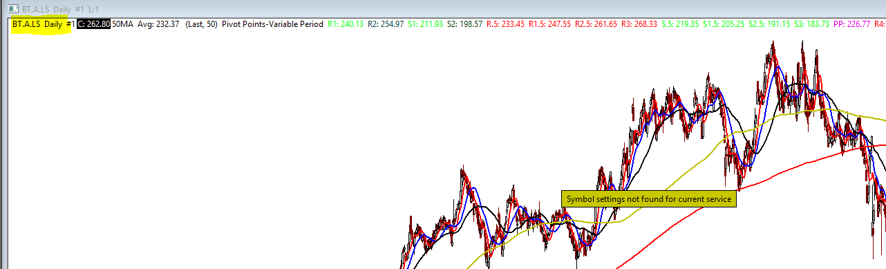Hi, I opened up SC today and found the Yellow message "Symbol Settings not found for current Service". This seems to happen on all of the FTSE Stocks e.g. KGF..LS or EZJ.LS for example.This was working before and I dont beleive I've changed any settings. I have my feed set to SC Data - All Services. I have just tried the Global Symbol Settings 'Full reset' button but that didnt work. Any idea please what I can try at all? Thank you |