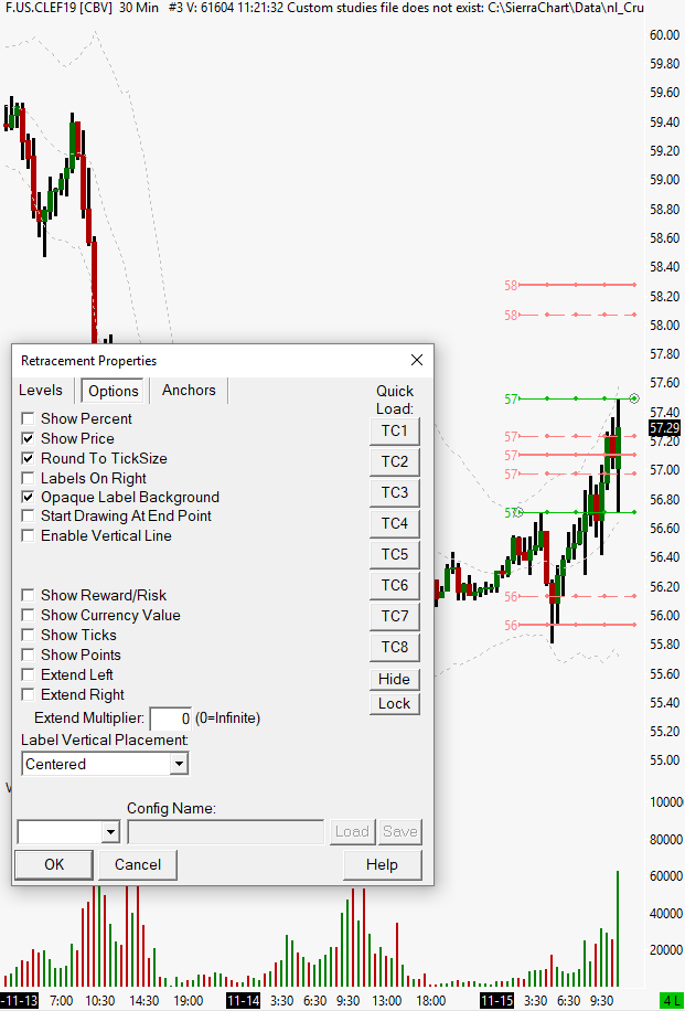 Retracement Tool has started to drop the decimal part of the prices. As you can see by the attached chart for CL, the tool only shows '57' instead of '57.71', etc. This is a recent problem - I have only noticed it since the latest release. My attached chart also shows my Tool Config settings.