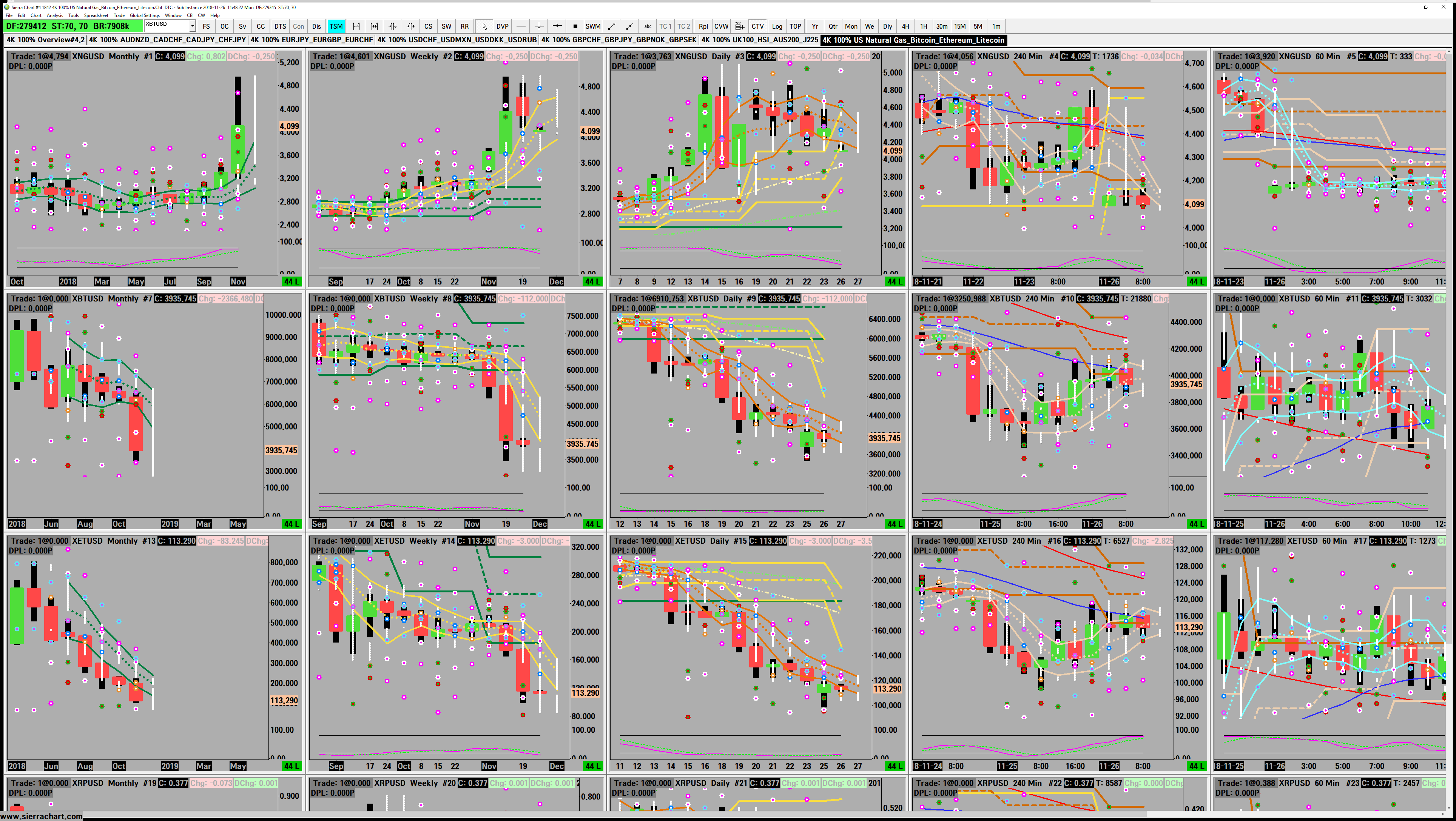 Hello, i did NOT hide all the studies because its not of importance. I hope i am not in the 35% category. IF so, please let me know. I suggest just looking at the window borders and notice how the chartbook contains charts NOT show on the screen but are rather placed outside of the main application window. The problem with this is, that this happens to me now for weeks on random occasions. Meaning, i cant replicate it. I didnt change any resolution but after restarting the pc after weekend i might end up like this. This happened AGAIN this morning. I didnt change any setting on my pc between closing sc/weekend shutdown and reloading sierrachart. Needless to say, that ALL the charts did fit into the main window last week and as i said, i didnt change anything. I also cant use any of the "window tile commands" because sierrachart does not place the chartwindows in a way i need them. I always have to adjust the chart windows manually. What could it be? I also tried to figure it out by setting different screens as main windows desktop...nothing. I changed screen resolutions back and forth...nothing. I am getting tiered of reconfiguring my charts. I have 2 gpus...1 amd and 1 nvidia and 5 monitors with 3 different resolutions in total... But this shouldnt be the source of the problem, right? PS: It looks like, the monitor is set to 4k in the settings but doesnt display 4k...but how would this make any sense? The amd card supports 4! 4k monitors at native resolution and 2 are only connected. The nvidia card supports one 4k native resolution@60Hz and only has one 4k monitor connected to it. The screenshot is from a monitor connected to the amd card. The same problem occurs to me on the 2k monitor. If it happens, it happens to all the sc instances. http://www.sierrachart.com/image.php?Image=1543229311310.png Date Time Of Last Edit: 2018-11-26 11:21:55