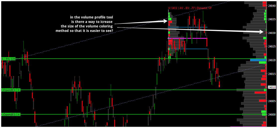 I have already asked for the same thing here, a couple of weeks ago. Volume by Price - Maximum Delta Bar Width As of today no viable solutions by sierrachart support. |