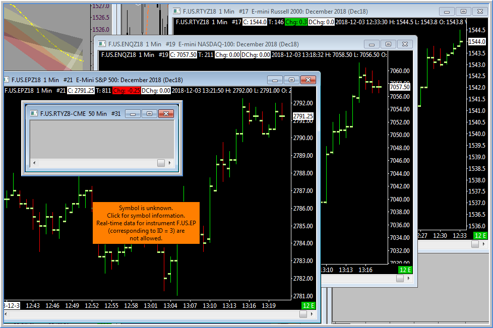 OK, here is an updated one: THE PROBLEM IS CHART IS UPDATED TO CURRENT TIME, BUT THEN SHUTS DOWN, SO GET NO REAL TIME DATA, WHICH IS WHAT I SIGNED UP FOR IN THIS EXCHANGE PACKAGE. --------------------------------------------------------------- Reading Internal Order ID file. | 2018-12-04 20:34:50 Reading Trade Orders file. | 2018-12-04 20:34:50 Reading Trade Positions file. | 2018-12-04 20:34:50 Account Balance file. | 2018-12-04 20:34:50 Listening on UDP port 22904. | 2018-12-04 20:34:50 Software version: 1842 32-bit | 2018-12-04 20:34:50 Enabled for: Advanced Features. | 2018-12-04 20:34:50 Enabled for: Sierra Chart Historical Data Service. | 2018-12-04 20:34:50 Allow Support for Sierra Chart Data Feeds is enabled. | 2018-12-04 20:34:50 Current selected Data/Trading service: CQG FIX Trading | 2018-12-04 20:34:50 Chart Update Interval: 500 | 2018-12-04 20:34:50 Data/Trade Service Settings automatically set. | 2018-12-04 20:34:50 Time Zone: -07:00:00 (MST-07) | 2018-12-04 20:34:50 2018-12-04 20:34:49 Local computer time | 2018-12-04 20:34:50 2018-12-05 03:34:49 Local computer time in UTC | 2018-12-04 20:34:50 2018-12-04 20:34:49 Local computer time in SC Time Zone | 2018-12-04 20:34:50 2018-12-05 03:34:46 Server time in UTC | 2018-12-04 20:34:50 Local computer UTC time and Server UTC time difference: 3 seconds. | 2018-12-04 20:34:50 Program path: C:\SierraChart\ | 2018-12-04 20:34:50 Data Files path: C:\SierraChart\Data\ | 2018-12-04 20:34:50 OS Version Number: 6.1 | 2018-12-04 20:34:50 Locale Setting: C | 2018-12-04 20:34:50 DLLs: KowalT3.dll, sst_imbalance.dll, UserContributedStudies.dll, UserContributedStudies_64.dll | 2018-12-04 20:34:50 Checking for new symbol settings for service code cqg | 2018-12-04 20:34:50 HTTPS www.sierrachart.com:443 (4) | Creating socket. Using TLS 1.2. | 2018-12-04 20:34:50 HTTPS www.sierrachart.com:443 (4) | Connecting to IP: 204.15.192.108. | 2018-12-04 20:34:50 Symbol settings are up-to-date for cqg | 2018-12-04 20:34:50 Received 5 login tokens. | 2018-12-04 20:34:50 HTTPS www.sierrachart.com:443 (5) | Creating socket. Using TLS 1.2. | 2018-12-04 20:34:52 HTTPS www.sierrachart.com:443 (5) | Connecting to IP: 204.15.192.108. | 2018-12-04 20:34:52 HTTPS login.sierrachart.com:443 (1) | Socket gracefully closed by remote side. | 2018-12-04 20:34:54 HTTPS login.sierrachart.com:443 (1) | Received socket Close event. | 2018-12-04 20:34:54 HTTPS login.sierrachart.com:443 (1) | Signaling to core to close socket | 2018-12-04 20:34:54 HTTPS login.sierrachart.com:443 (1) | Graceful close received or receive error. Shutdown complete. Closing socket now. | 2018-12-04 20:34:54 HTTPS login.sierrachart.com:443 (1) | Closed. | 2018-12-04 20:34:54 CQG FIX: Connecting to fixapi.cqgtrader.com. Port: 6925. | 2018-12-04 20:34:55 HTTPS www.sierrachart.com:443 (4) | Socket gracefully closed by remote side. | 2018-12-04 20:34:55 HTTPS www.sierrachart.com:443 (4) | Received socket Close event. | 2018-12-04 20:34:55 HTTPS www.sierrachart.com:443 (4) | Signaling to core to close socket | 2018-12-04 20:34:55 HTTPS www.sierrachart.com:443 (4) | Graceful close received or receive error. Shutdown complete. Closing socket now. | 2018-12-04 20:34:55 HTTPS www.sierrachart.com:443 (4) | Closed. | 2018-12-04 20:34:55 HTTPS www.sierrachart.com:443 (2) | Socket gracefully closed by remote side. | 2018-12-04 20:34:55 HTTPS www.sierrachart.com:443 (2) | Received socket Close event. | 2018-12-04 20:34:55 HTTPS www.sierrachart.com:443 (2) | Signaling to core to close socket | 2018-12-04 20:34:55 HTTPS www.sierrachart.com:443 (2) | Graceful close received or receive error. Shutdown complete. Closing socket now. | 2018-12-04 20:34:55 HTTPS www.sierrachart.com:443 (2) | Closed. | 2018-12-04 20:34:55 CQG FIX socket (1) | Creating socket. Using TLS 1.2. | 2018-12-04 20:34:55 CQG FIX socket (1) | Connecting to IP: 208.48.16.214. | 2018-12-04 20:34:55 CQG FIX: Sending the Logon message. | 2018-12-04 20:34:56 CQG FIX Trading | Connected to trading server. | 2018-12-04 20:34:56 CQG FIX Trading | Connecting to server api.cqg.com | 2018-12-04 20:34:56 CQG WebSocket | Connecting to WebSocket server. | 2018-12-04 20:34:56 CQG WebSocket socket (2) | Creating socket. Using TLS 1.2. | 2018-12-04 20:34:56 CQG WebSocket socket (2) | Connecting to IP: 208.48.16.35. | 2018-12-04 20:34:56 CQG FIX | FCM name: AMP | 2018-12-04 20:34:56 CQG WebSocket | Opening WebSocket. | 2018-12-04 20:34:56 CQG WebSocket | Sending WebSocket handshake. | 2018-12-04 20:34:56 CQG WebSocket | Header line. HTTP/1.1 101 Switching Protocols | 2018-12-04 20:34:57 CQG WebSocket | Header line. Connection: upgrade | 2018-12-04 20:34:57 CQG WebSocket | Header line. Sec-WebSocket-Accept: ZGAEXzy87GZnlb91lifcoQIDUz4= | 2018-12-04 20:34:57 CQG WebSocket | Header line. Server: WebSocket++/0.7.0 | 2018-12-04 20:34:57 CQG WebSocket | Header line. Upgrade: websocket | 2018-12-04 20:34:57 CQG WebSocket | Header line. | 2018-12-04 20:34:57 CQG WebSocket | Web socket state is now open. | 2018-12-04 20:34:57 CQG FIX Trading | WebSocket connected. | 2018-12-04 20:34:57 CQG FIX Trading | Sending market data logon message. | 2018-12-04 20:34:57 CQG FIX Trading | Base Time: 2018-12-01T04:47:02. 2018-12-01 04:47:02 | 2018-12-04 20:34:57 CQG FIX Trading | Logon successful. Session Token = Lra1mx5T5eoKkn5n9VT25N1se7RrIbizTOJ6j5V4nn4yIxvXdWKClvgiiPq2s/vKBGt+XjOkgTm | 2018-12-04 20:34:57 CQG FIX Trading | Connected to data and trading server. | 2018-12-04 20:34:57 HTTPS www.sierrachart.com:443 (5) | Socket gracefully closed by remote side. | 2018-12-04 20:34:57 HTTPS www.sierrachart.com:443 (5) | Received socket Close event. | 2018-12-04 20:34:57 HTTPS www.sierrachart.com:443 (5) | Signaling to core to close socket | 2018-12-04 20:34:57 HTTPS www.sierrachart.com:443 (5) | Graceful close received or receive error. Shutdown complete. Closing socket now. | 2018-12-04 20:34:57 HTTPS www.sierrachart.com:443 (5) | Closed. | 2018-12-04 20:34:57 Loading DLL C:\SierraChart\Da