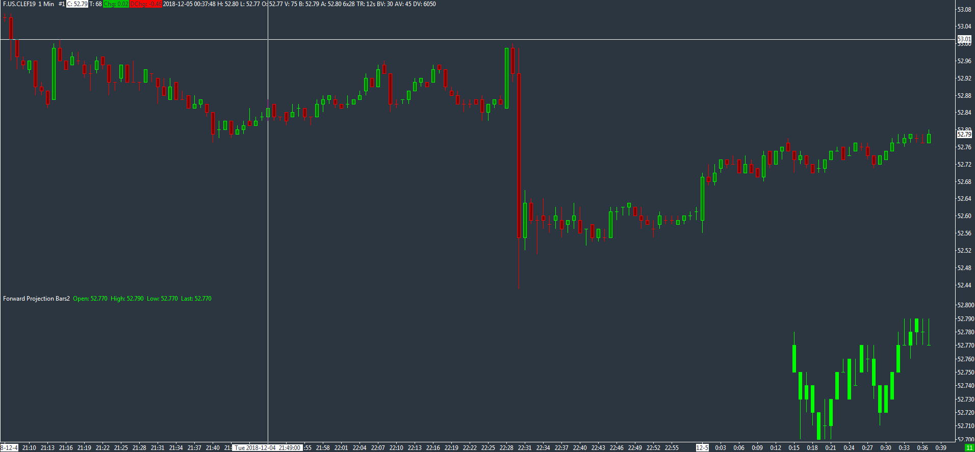 In studies6 and elsewhere on the Support Board, you have proposed the following code as an example of how to forward project beyond the last bar on the chart #include "sierrachart.h" #include <windows.h> #include <string> #include <stdlib.h> #include <algorithm> #include "scstudyfunctions.h" using namespace std; SCDLLName("ForwardProjectionBars2") SCSFExport scsf_ForwardProjectionBars2(SCStudyInterfaceRef sc) { SCSubgraphRef Open = sc.Subgraph[0]; SCSubgraphRef High = sc.Subgraph[1]; SCSubgraphRef Low = sc.Subgraph[2]; SCSubgraphRef Last = sc.Subgraph[3]; if (sc.SetDefaults) { // Set the configuration and defaults sc.FreeDLL = 1; sc.GraphName = "Forward Projection Bars2"; sc.AutoLoop = 1; sc.GraphRegion = 1; sc.GraphDrawType=GDT_OHLCBAR; Open.Name = "Open"; Open.DrawStyle = DRAWSTYLE_LINE; Open.PrimaryColor = RGB(0,255,0); Open.DrawZeros = false; Open.ExtendedArrayElementsToGraph= 100; High.Name = "High"; High.DrawStyle = DRAWSTYLE_LINE; High.PrimaryColor = RGB(0,255,0); High.DrawZeros = false; High.ExtendedArrayElementsToGraph= 100; Low.Name = "Low"; Low.DrawStyle = DRAWSTYLE_LINE; Low.PrimaryColor = RGB(0,255,0); Low.DrawZeros = false; Low.ExtendedArrayElementsToGraph= 100; Last.Name = "Last"; Last.DrawStyle = DRAWSTYLE_LINE; Last.PrimaryColor = RGB(0,255,0); Last.DrawZeros = false; Last.ExtendedArrayElementsToGraph= 100; return; } // Do data processing //Repeat last bar into forward projection area. if(sc.Index+1 >= sc.ArraySize) { for (int Index = sc.ArraySize ; Index < sc.ArraySize + Open.ExtendedArrayElementsToGraph ; Index++) { Open[Index] = sc.Open[sc.Index]; High[Index] = sc. High[sc.Index]; Low[Index] = sc. Low[sc.Index]; Last[Index] = sc. Close[sc.Index]; } } return; } http://www.sierrachart.com/image.php?Image=1543966669608.png |