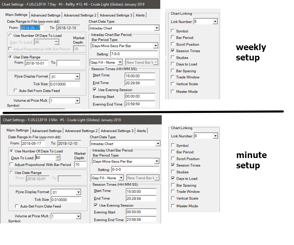 From my point of view the function "Days to Load" (Chart Settings) do not work correctly. I am using different "minute" charts (M1, M5 M15 etc) and a weekly chart. I case of weekly you have to start with a monday (as I know). To be sure, that all other "minute" charts using the same number of loaded days I choosed the option "Days to load" in the chart settings (see pic). From time to time I change the date range for the weekly chart and in that case all other charts do change in the same manner. |