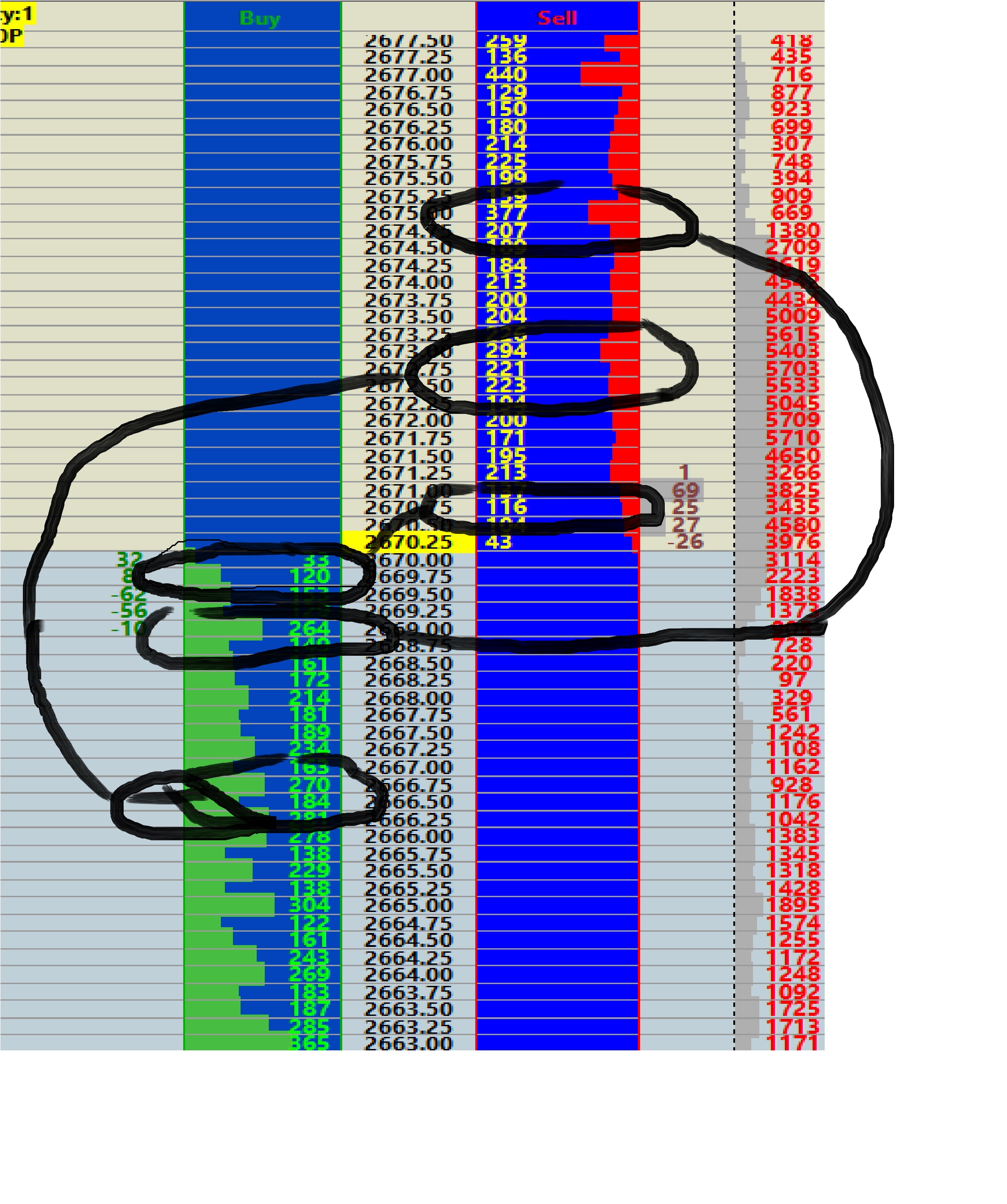 Hi, So to be clear, my problem is that the lengh of the bar histogram is not proportional to quantity for ask and bid. For instance for a volume of 120 at 22669.76 the bid s histogram representation is 4 time higher than the ask at 116 at 2670.75. Also the Sell and Buy figures appears to be correct. I am confuse with your answer as If you don t support this part of the software, could you please indicate who does? Thanks |
