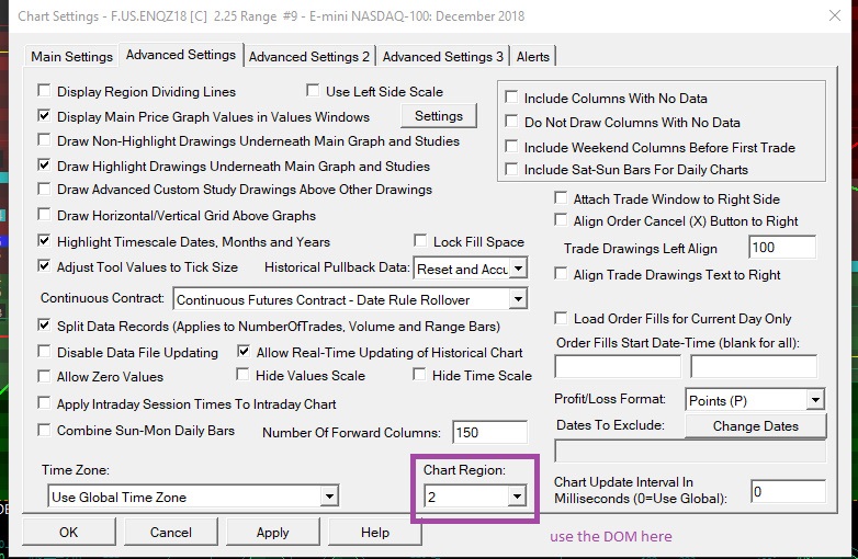 Hi team of sierra chart, I have two problems : - the first is that the dom on the chart can not be moved to another window, so I would have to be able to move it to the 'chart region' of my choice, ie chart region number two, without having to use another chart to display the DOM, thanks for allowing this setting this would be very useful. - I would like to extract a data present in a chart and to be able to use it in another chart, not with 'text display for study of chart' but extract the data to be able to use it for calculations and automatism on another chart, can please tell me if it is possible to remedy or, if there is already a solution to tell me the chemion to take. thank you very much for the help you can bring me and also the possible update you will do. Looking forward to a next answer. Thank you so much for what you have done, and the infinite possibility that you allow us to do. cordially |