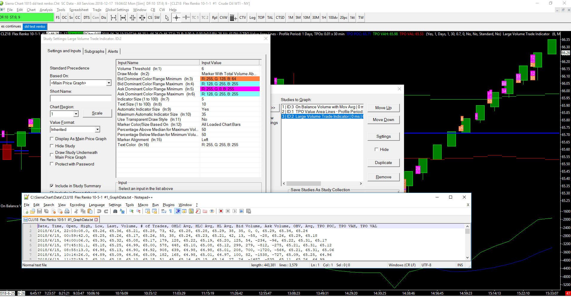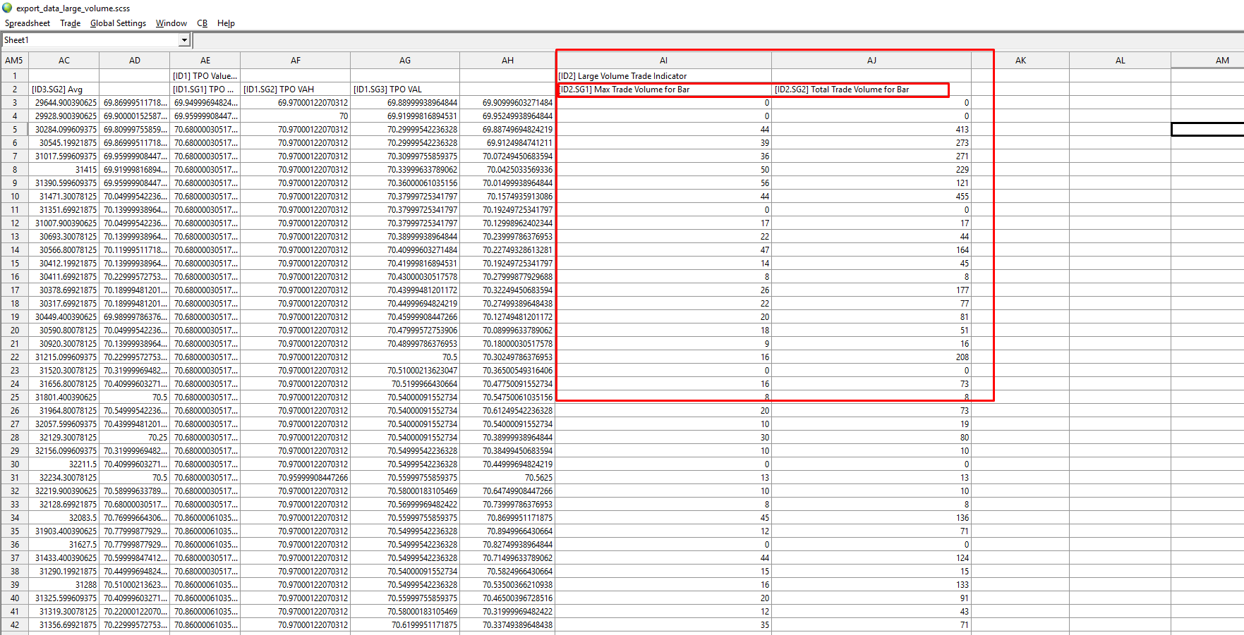 I am trying to export this indicator: Large Volume Trade Indicator using Edit-->"export Bar and Study data to text file" but the data of the study is not exported altough other study data is exported. pls advice |