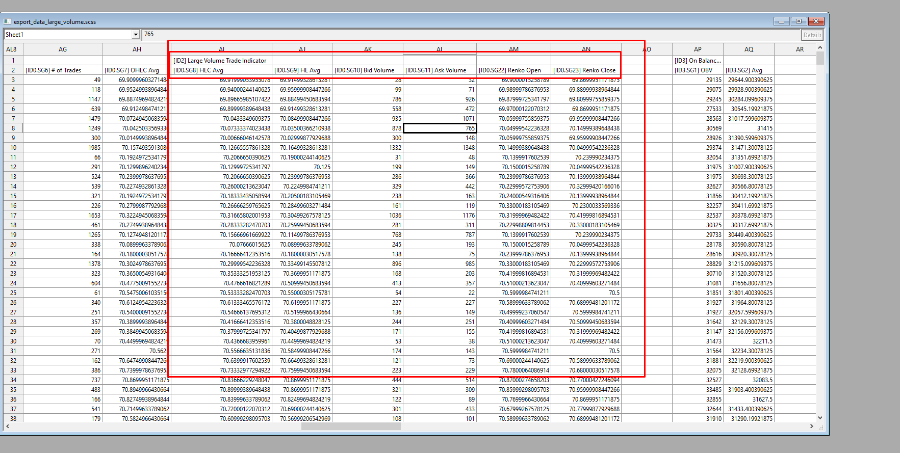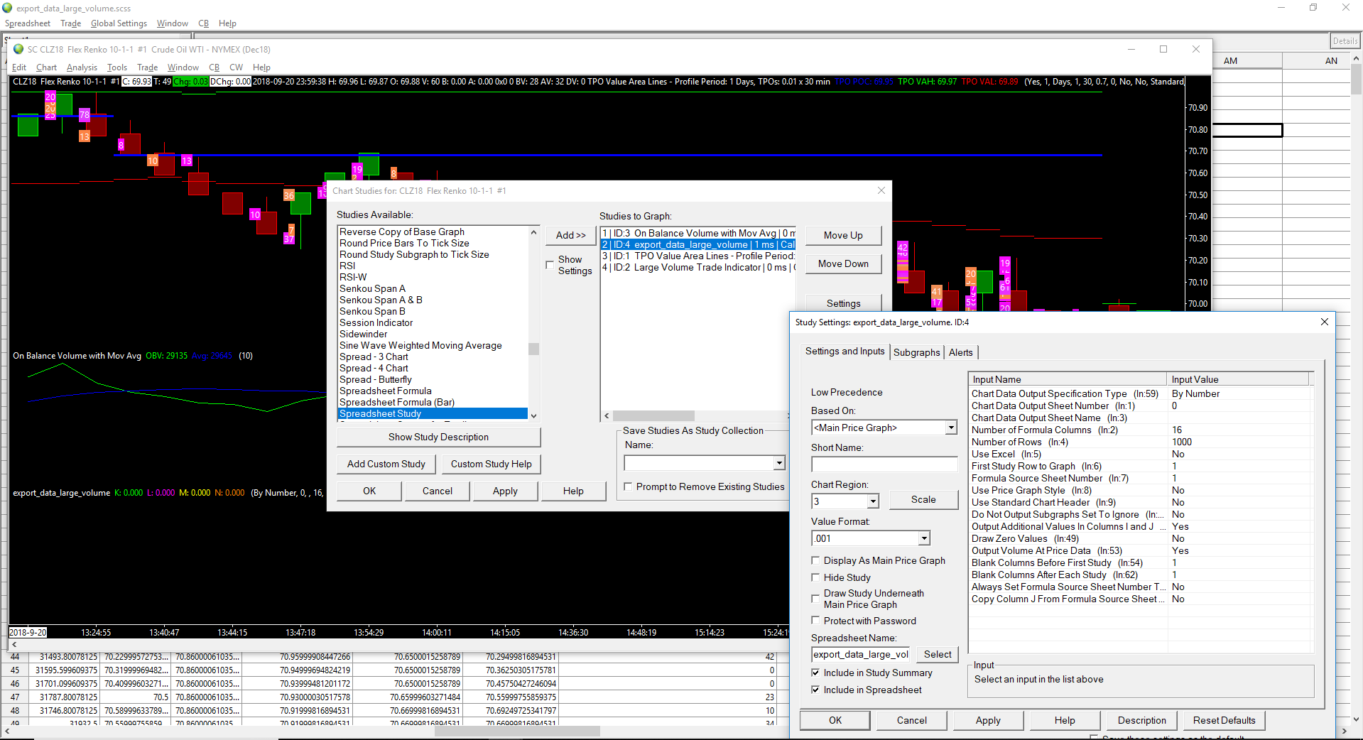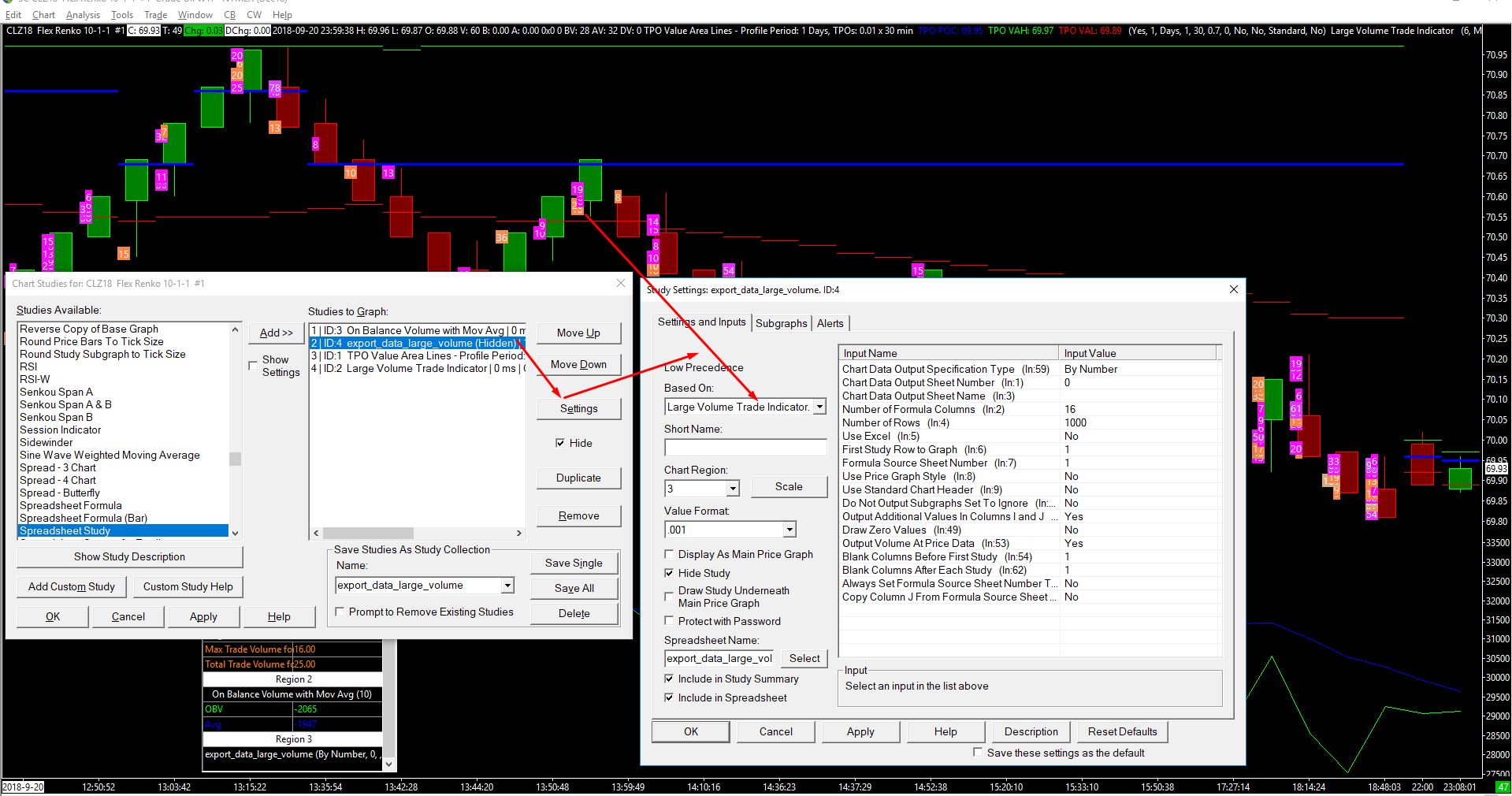 One thing we want to point out is do not base the Spreadsheet study on the Large Volume Trade Indicator. It should just be based on the main price graph.