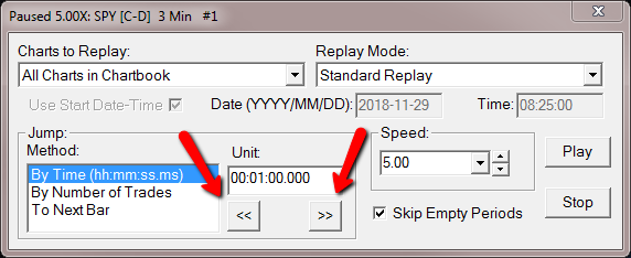 Can you add to the available buttons for "customize keyboard shortcut" the chart replay buttons for advancing forward and rewinding backwards (see pic with red arrows pointing to the buttons)? You currently have 3 of the replay chart buttons available for keyboard shortcut: 1) replay chart 2) play/pause 3) stop. I find that while using chart replay i typically use the advance and rewind buttons very often during a replay in order to get through uninteresting periods in the chart and it would be a big help during replays to be able to have these buttons available for keyboard shortcut allows for better concentration when replaying. Thanks |