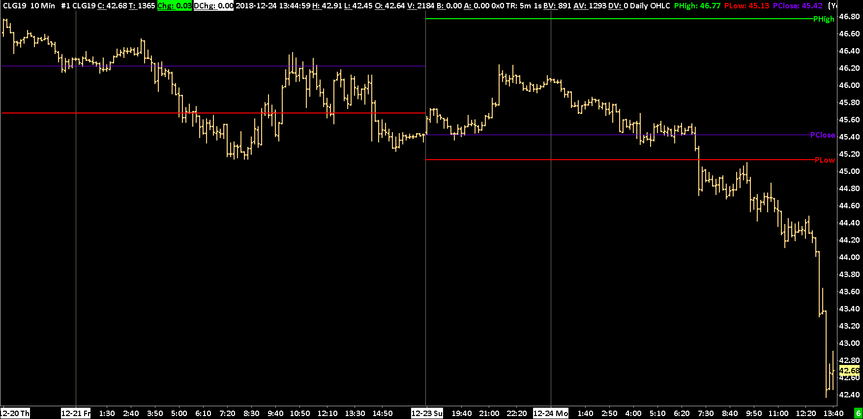 Here is an example of what you can do: http://www.sierrachart.com/image.php?Image=1545687684181.png In this chart you can see that this past Sunday evening there are lines representing Friday's high, low, and close values. Those will exist right at the 1st opening bar of Sunday. Sierra Chart Support - Engineering Level Your definitive source for support. Other responses are from users. Try to keep your questions brief and to the point. Be aware of support policy: https://www.sierrachart.com/index.php?l=PostingInformation.php#GeneralInformation For the most reliable, advanced, and zero cost futures order routing, *change* to the Teton service: Sierra Chart Teton Futures Order Routing |
