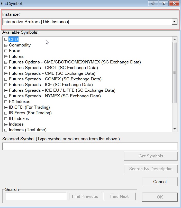 My computer is running several SC instance connecting to different Data/Trade Vendor. Once I updated one of SC to the current version. The "Find Symbol" cannot show another instance/vendor Symbols (SC_updated.jpg). Before update, it normally show as the SC_not_updated.jpg. Since I need to get the symbol from different instance to the instance working for trade vendor, I need this function back. Pls advise how I can fix it.