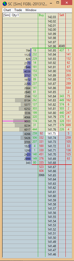 Hi, I am using TT data to chart EUREX symbols. When watching the trading DOM a lot of the times either the upmost level for the offers or the downmost level for bids is displayed with a big gap of usually 10 ticks. This seems to happen when price ticks up or down, although I couldn't find a pattern for this type of behaviour. The number of bids re. offers seem to right though when compared to another feed (iqfeed). Attached are screenshots of the DOM showing a gap at the top as well as a gap at the bottom. Please find a solution for this bug. Thanks. |
