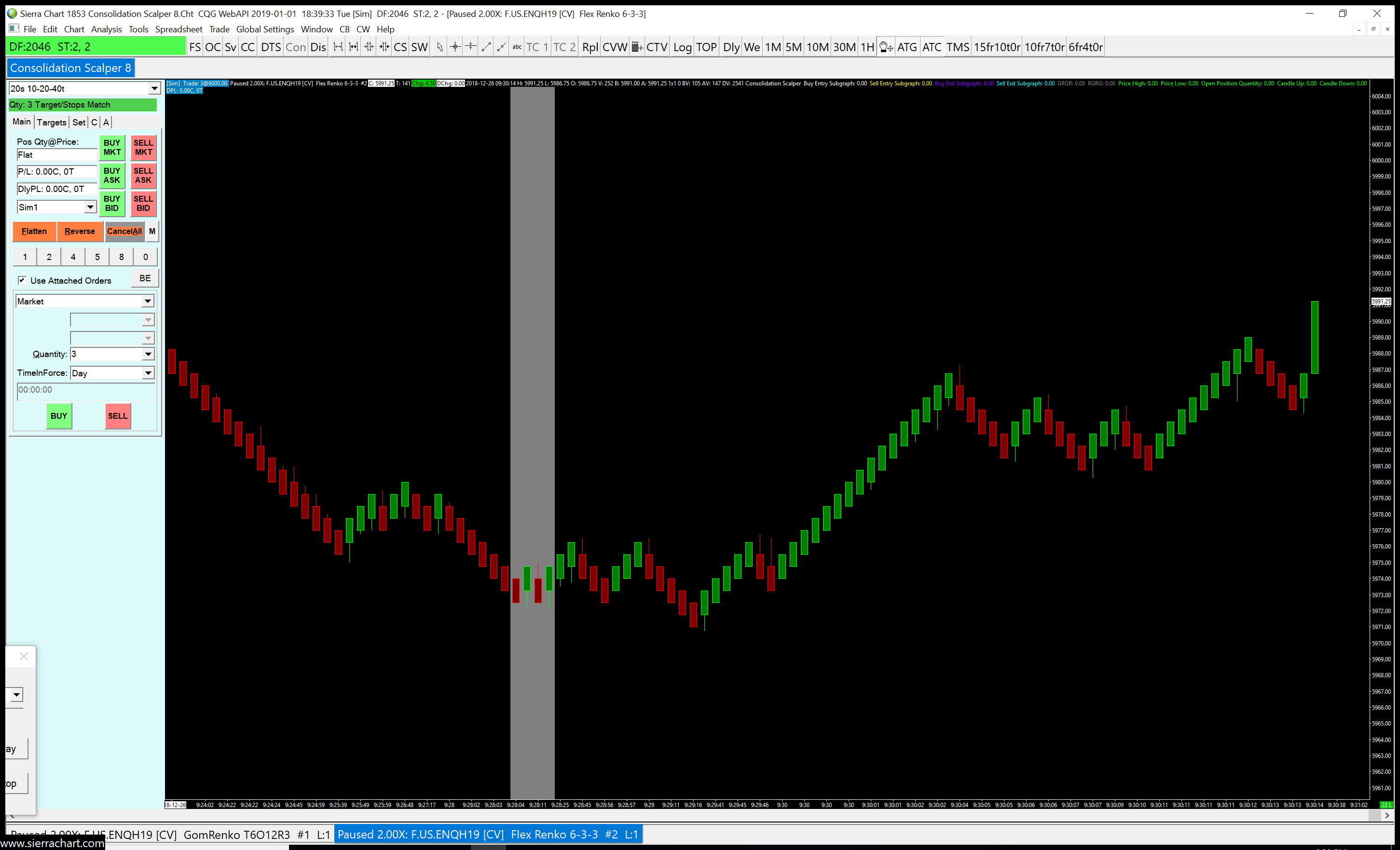 We still cannot reproduce this even when using CQG data. We will need to a remote assistance session to look into this. Can you set your telephone number here and let us know when done: https://www.sierrachart.com/UserControlPanel.php?page=ManageAccountInfo Sierra Chart Support - Engineering Level Your definitive source for support. Other responses are from users. Try to keep your questions brief and to the point. Be aware of support policy: https://www.sierrachart.com/index.php?l=PostingInformation.php#GeneralInformation For the most reliable, advanced, and zero cost futures order routing, *change* to the Teton service: Sierra Chart Teton Futures Order Routing Date Time Of Last Edit: 2019-01-07 21:02:12