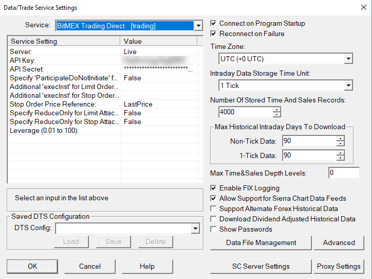 Hello, I am currently using a trial version of Sierra Chart and I can't connect to BitMEX live. After entering everything under "Global Settings" (see attachment) as specified here https://www.sierrachart.com/index.php?page=doc/BitMEX_Trading.php. When I then go to "Connect to Data Feed" under the "File" tab, it's grayed out and I can't select it (see attachment). What am I doing wrong? Thanks, ZS Date Time Of Last Edit: 2019-01-04 05:20:07