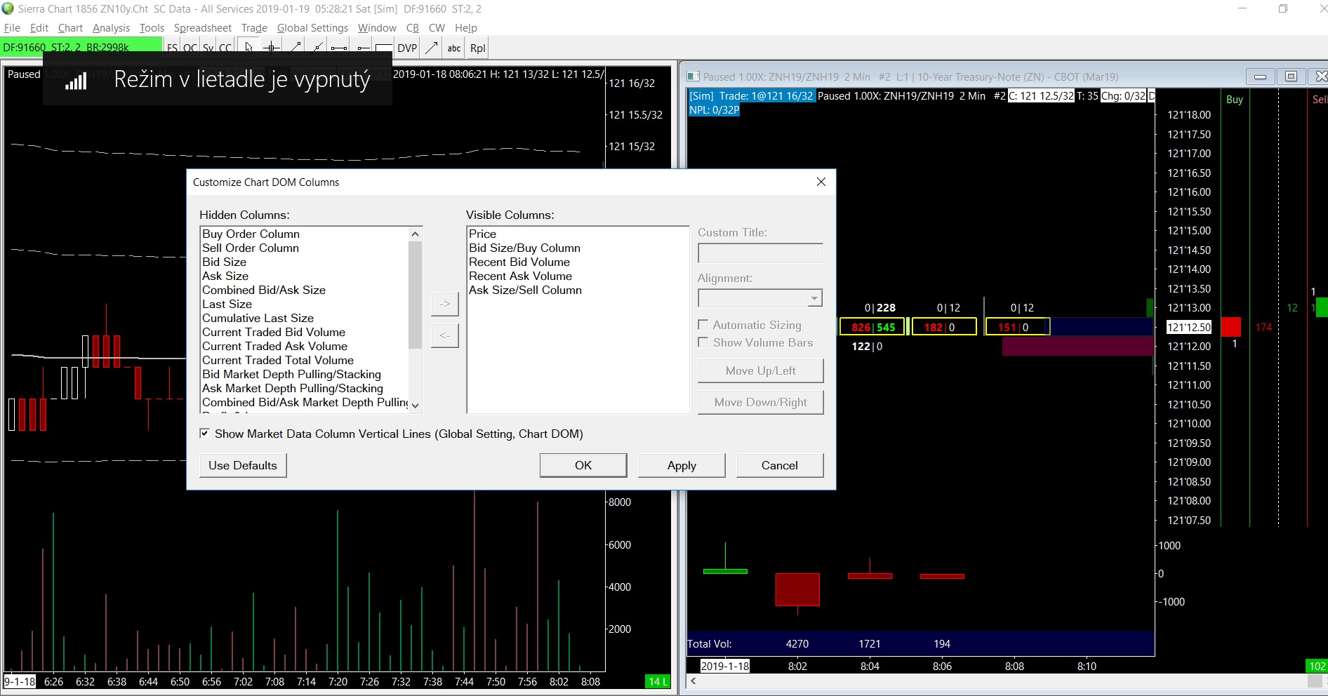 The only other thing we can think to check is to make sure that you have the correct columns displayed for the Buy and Sell sides. There are two different columns types that replace one another - on the Buy side they are called Buy Order Column and Bid Size/Buy Column. Ensure that you have the Bid Size/Buy Column and Ask Size/Sell Column selected for the displayed columns, otherwise the Market Depth will not be shown. Refer to the following: Global Trade Settings Windows: Bid Size/Buy Column - Left/Center/Right Aligned For the most reliable, advanced, and zero cost futures order routing, use the Teton service: Sierra Chart Teton Futures Order Routing Date Time Of Last Edit: 2019-01-18 18:36:40