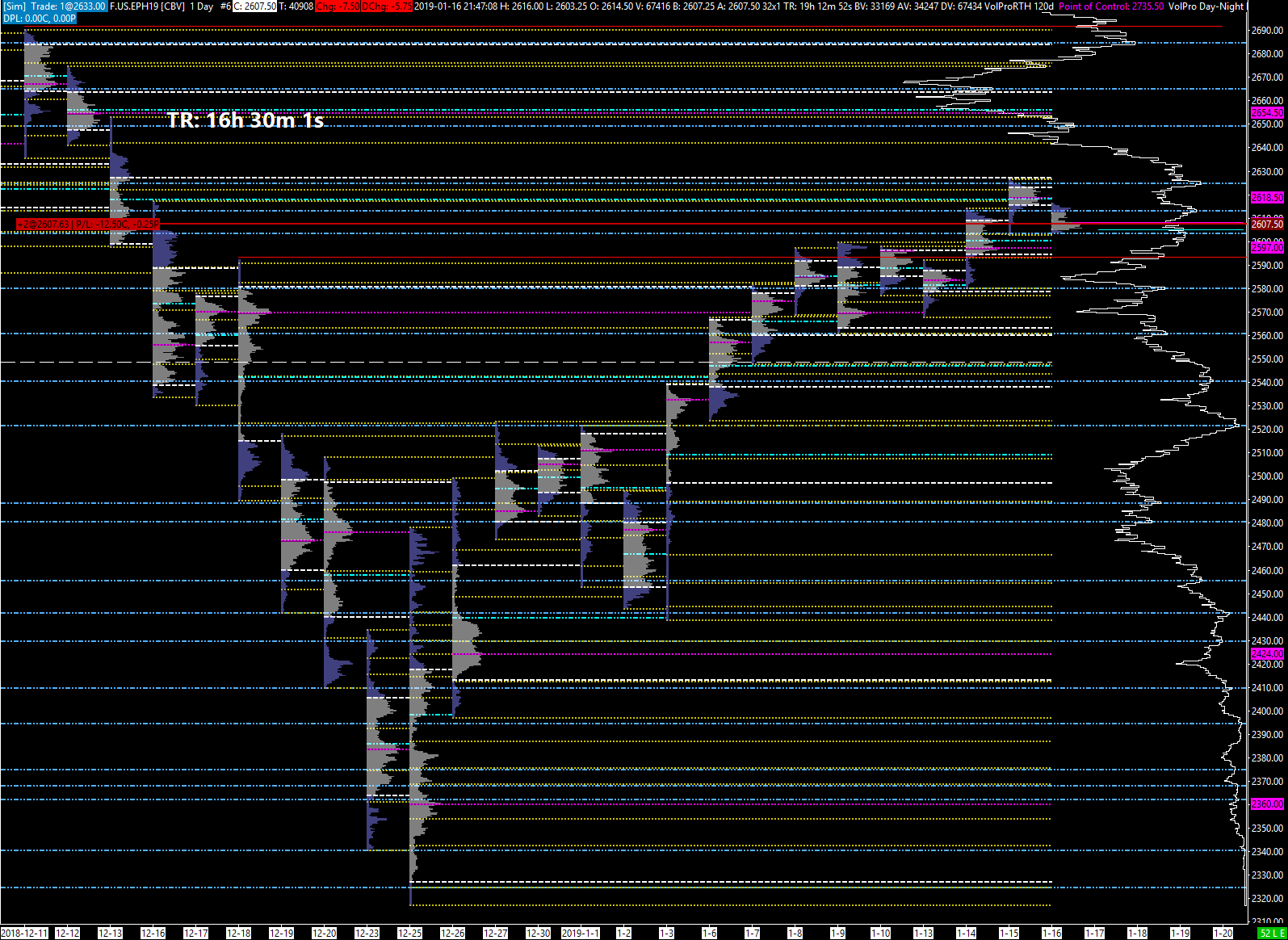 How can I set-up the 120-day volume profile at the far right to reflect ONLY the Regular Trading Hours (No evening volume) as shown on image #1 but show it on an RTH and Evening (combined) chart like image #2? Thank you very much for your help! http://www.sierrachart.com/image.php?Image=154769667689.png http://www.sierrachart.com/image.php?Image=1547696832320.png  |
