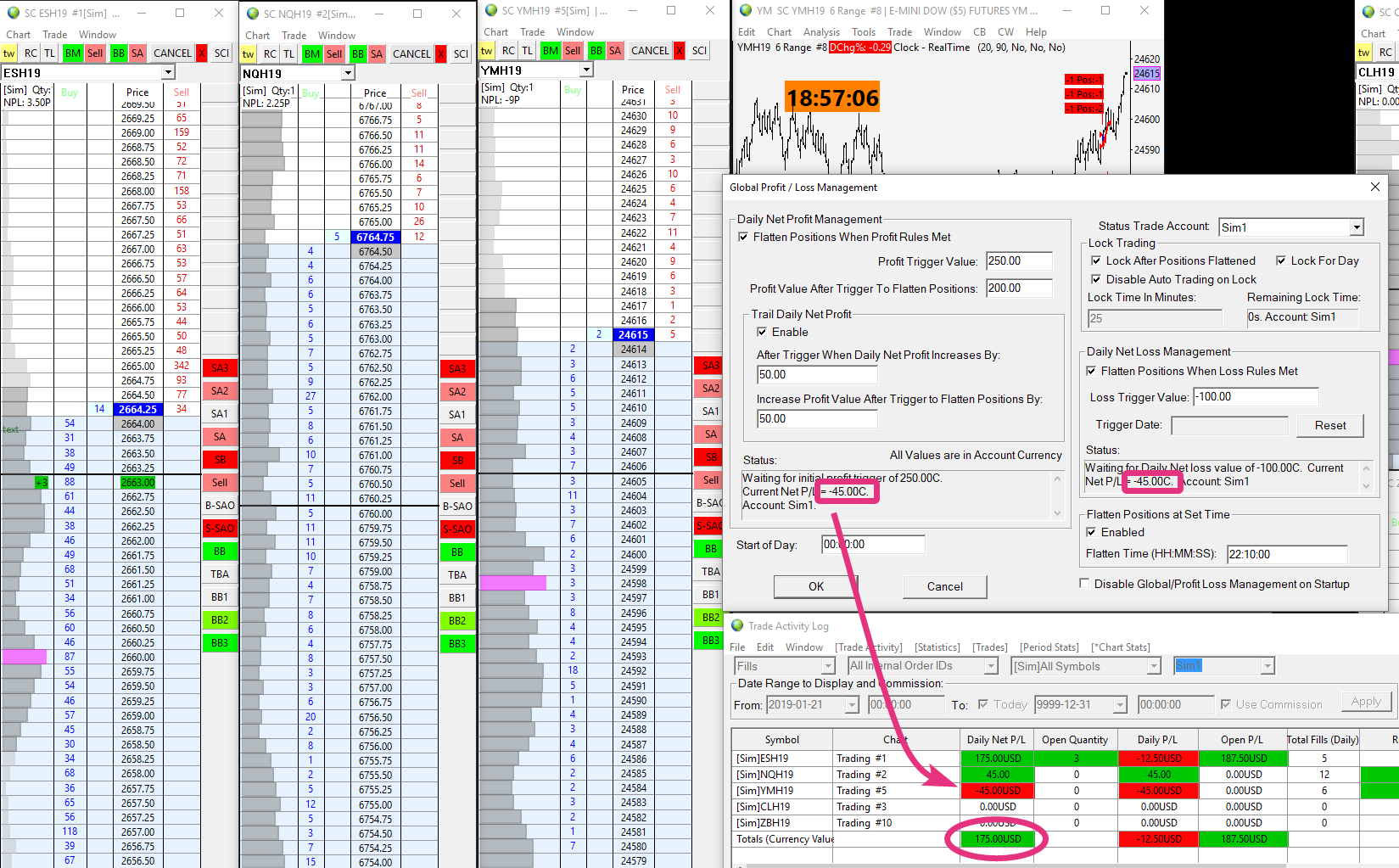 Global P/L management shows wrong current net P/L value. It just picked 1 particular chart's daily net p/l and NOT the total for all charts. Version 1863 on SC exchange feed CME: YM, NQ, ES. Please also find a screenshot highlighting the issue attached. cheers. |