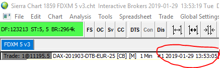i have 100 Mbit/s DSL on LAN cable (not wireless) i checked with ES, where i get the data from IB and not SC. there is no lag in time on chart. and time on chart is identical to time in title bar. could there be any settings in IB or SC that are causing the lag for FDAX since i am getting the data from SC and delayed data from IB here? |