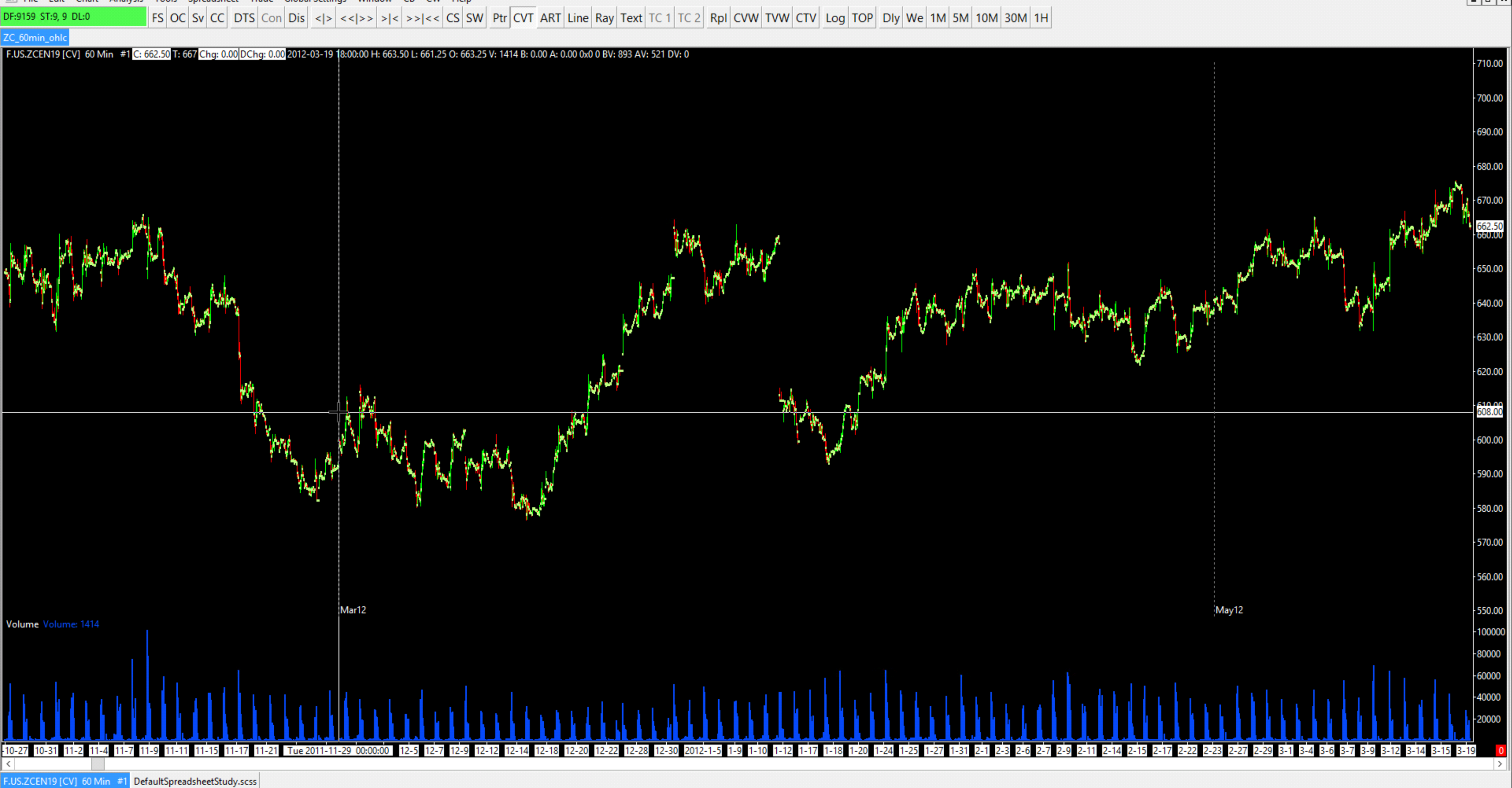 strange things, I use 'Chart>>Show Rollover Dates' for Corn(ZC) Continuous Future contract and sometimes Volume based Rollover comes after Date Rule Rollover(next day). How is it possible?