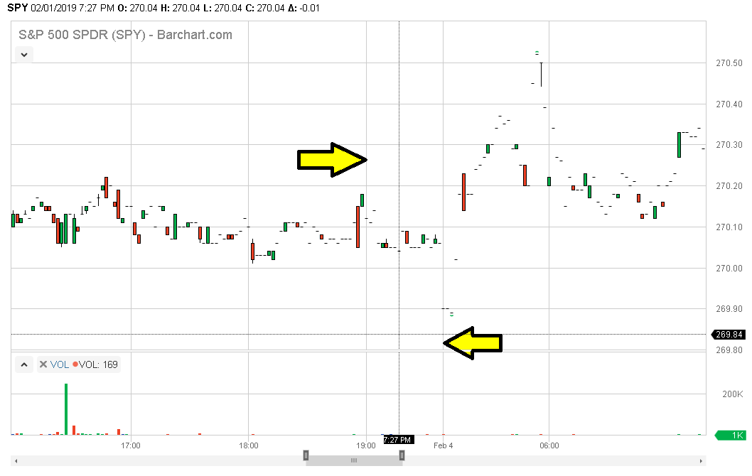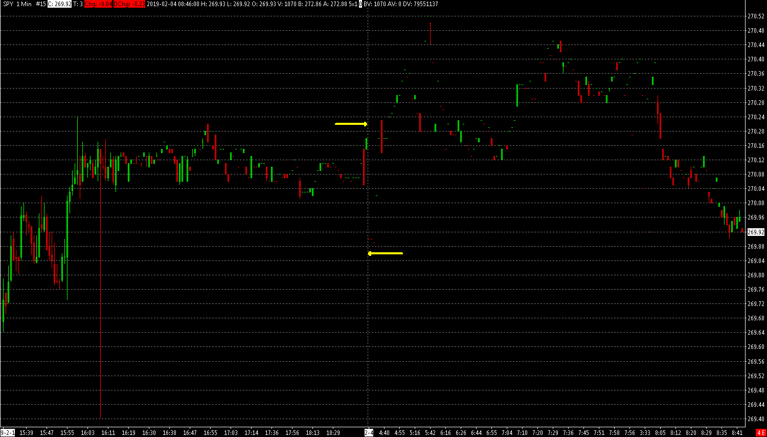 The SC data feed is missing equities data for the last hour of after hours trading on most Fridays (I spot checked back through November). The feed shows zero trades from 19:00 - 20:00 ET on the affected dates; Barchart's website and Ameritrade both show trades during those ranges. On Fridays from November through today, from 19:00 - 20:00 ET, SPY only shows trades on 11/2, 12/7, and 1/18 QQQ only shows trades on 11/2 AMD only shows trades on 11/2, 12/7, and 1/18 Doing a "Delete All Data and Download" didn't fix it. http://www.sierrachart.com/image.php?Image=1549414720495.png shows no trades for SPY on Friday 2/1 from 19:00 until reopen on Monday 2/4. The attached chart from barchart.com shows that trades were happening from 19:00 - 20:00 |