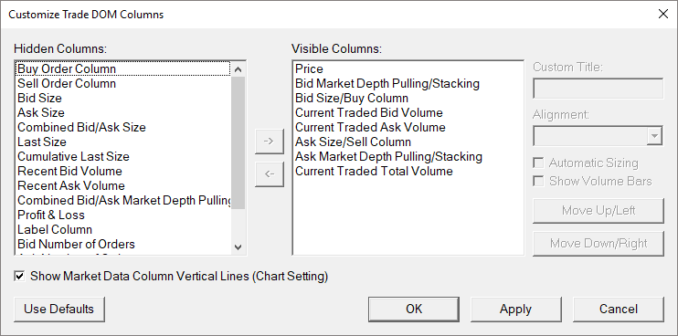 Hi all, when pressed "customize Chart/Trade Dom Columns Settings Window won't appear. It only appears when i press CTRL + ALT + DEL |