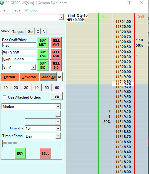 For market depth for the DAX would require that you use the Sierra Chart Exchange Data Feed and activate the EUREX exchange. Complete documentation is here: Sierra Chart Exchange Data Feed This data feed is an extra cost. Sierra Chart Support - Engineering Level Your definitive source for support. Other responses are from users. Try to keep your questions brief and to the point. Be aware of support policy: https://www.sierrachart.com/index.php?l=PostingInformation.php#GeneralInformation For the most reliable, advanced, and zero cost futures order routing, *change* to the Teton service: Sierra Chart Teton Futures Order Routing |