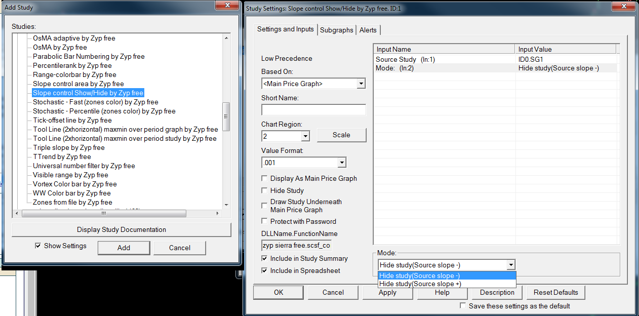 Hi, via ACSIL download free dll Ackin's indicators (SCH users requests for studies) - Update list | Post: 170827 edit: Study slope control source: some study (hidden) control (copies part of the source curve) by slope Study slope control 2 source: some study (hidden) output: the same control (show/hide study) by slope Date Time Of Last Edit: 2019-02-09 23:49:36