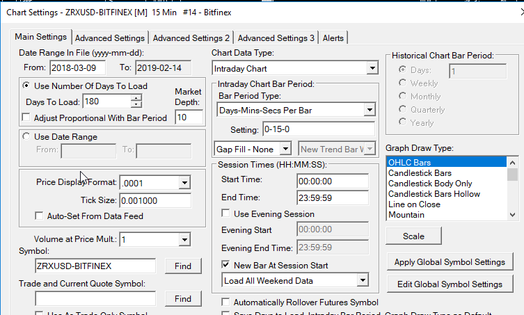The real-time and historical data issue with Bitfinex which existed on one of our servers is now resolved. Check the Price Display Format: Chart Settings: Price Display Format (Chart >> Chart Settings >> Symbol >> Symbol Settings menu) Sierra Chart Support - Engineering Level Your definitive source for support. Other responses are from users. Try to keep your questions brief and to the point. Be aware of support policy: https://www.sierrachart.com/index.php?l=PostingInformation.php#GeneralInformation For the most reliable, advanced, and zero cost futures order routing, *change* to the Teton service: Sierra Chart Teton Futures Order Routing |