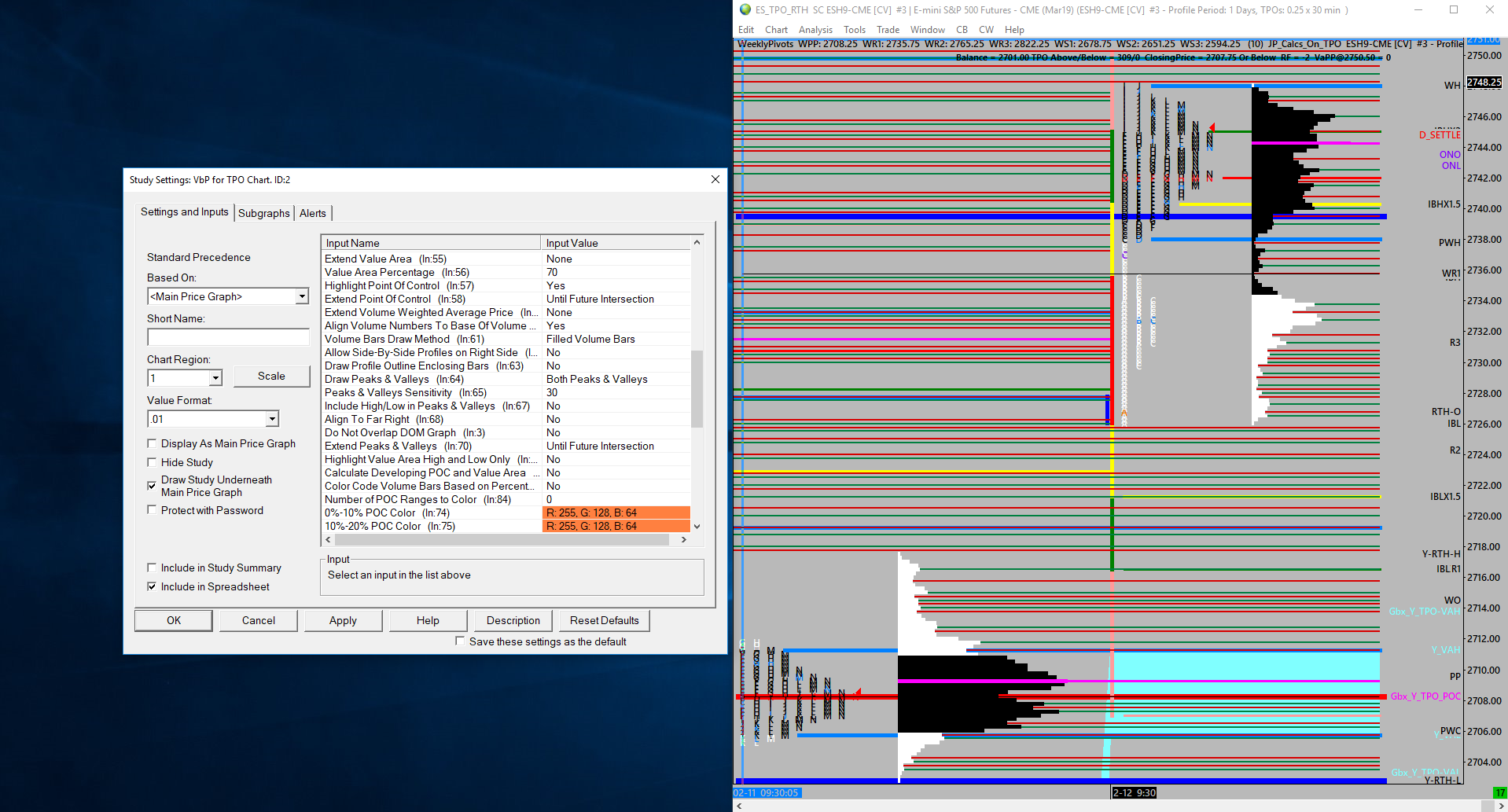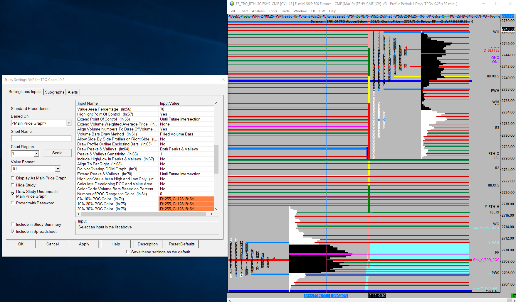In the case of a Volume by Price study on a TPO Profile chart, the sensitivity is always controlled by the TPO Profile chart Peak and Valley Sensitivity input. The Peak and Valley Sensitivity Input with the Volume by Price study in this case is ignored.