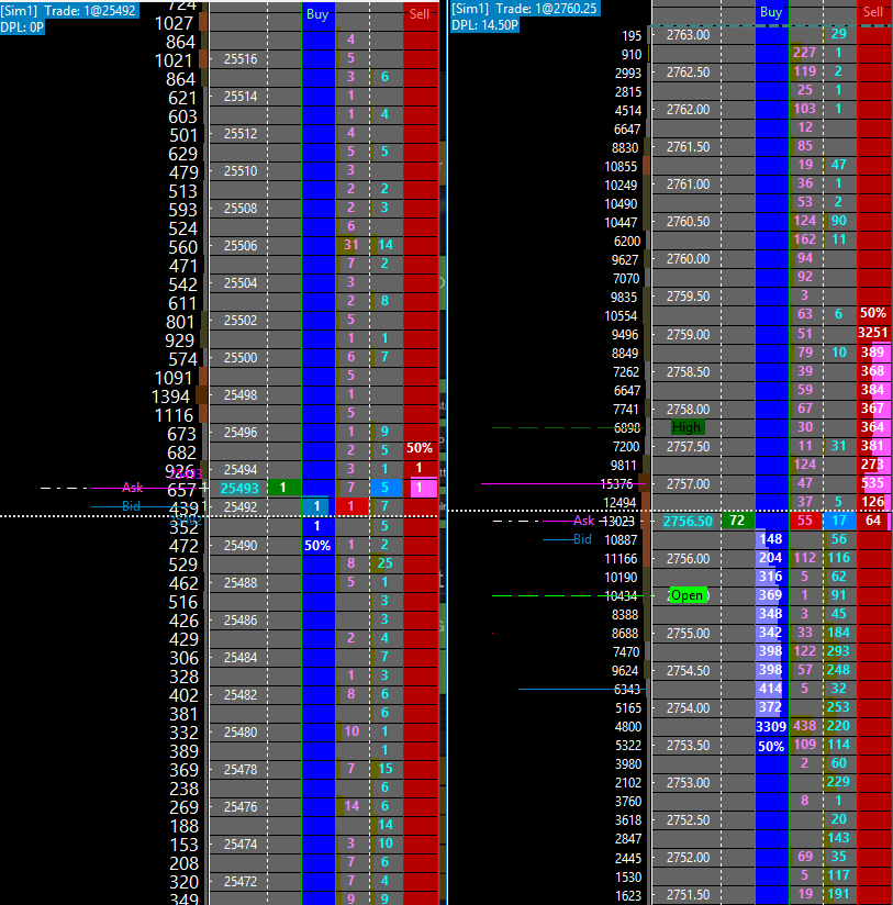 step 2) wait for market to move away WITHOUT DRAGGING scale step 3) 're-center trade DOM scales' is still no good - the re-center still doesn't go to the last traded price Here is an example with screenshots: 1) I selected "Auto Scale the Chart DOM" for both doms and it looks like https://www.sierrachart.com/Download.php?Folder=SupportBoard&download=26255